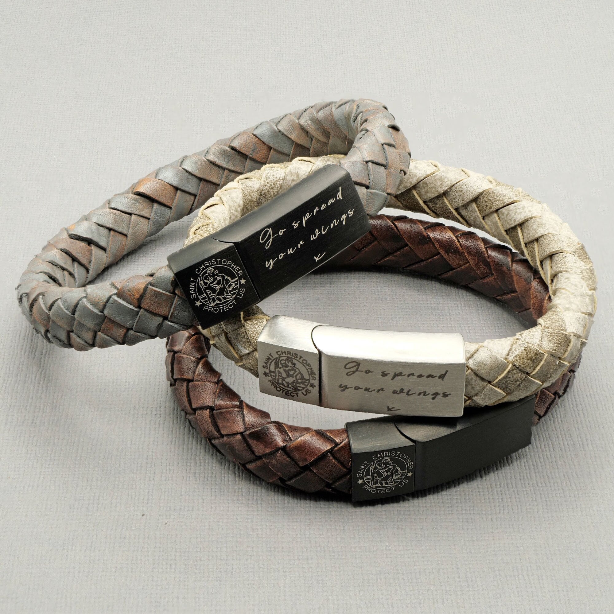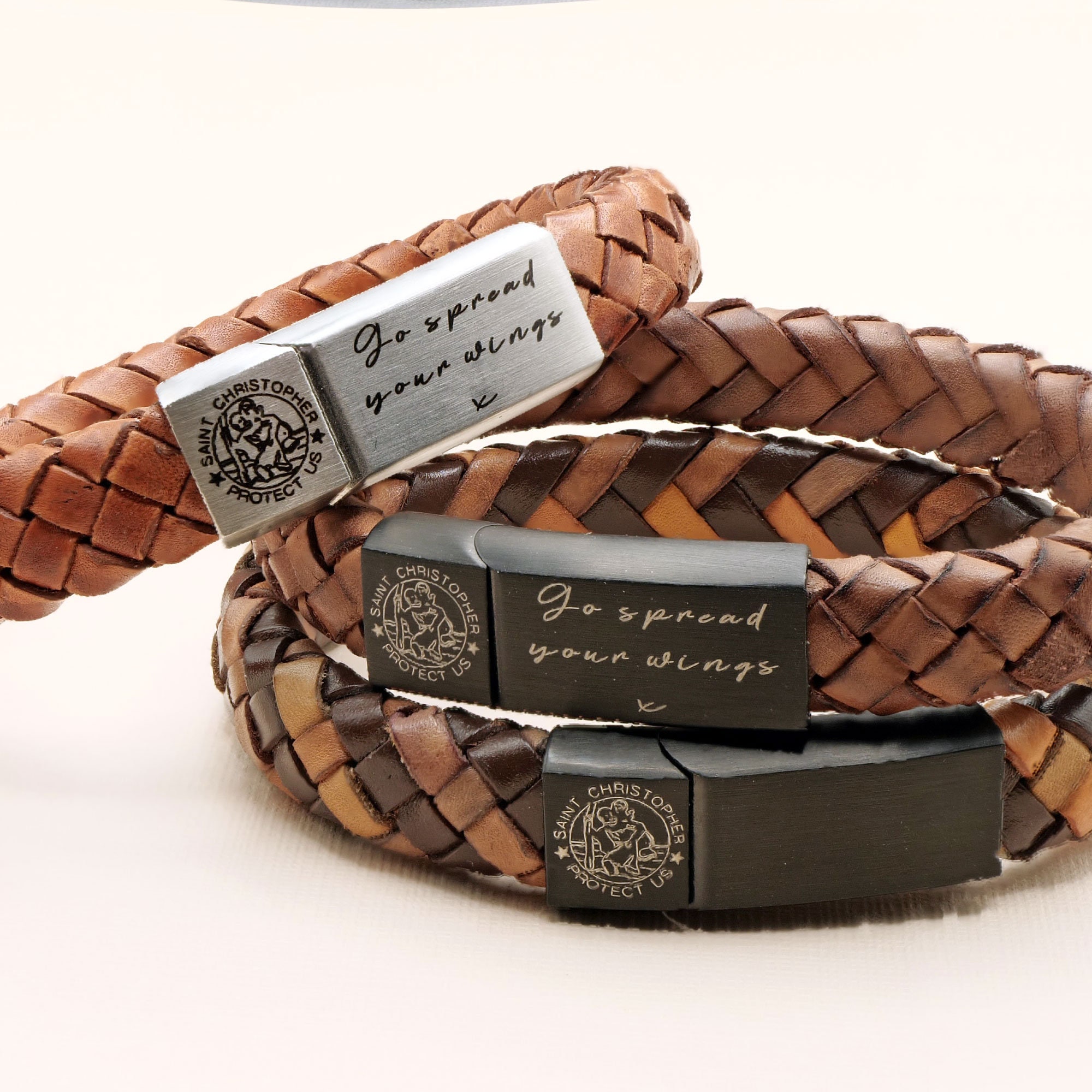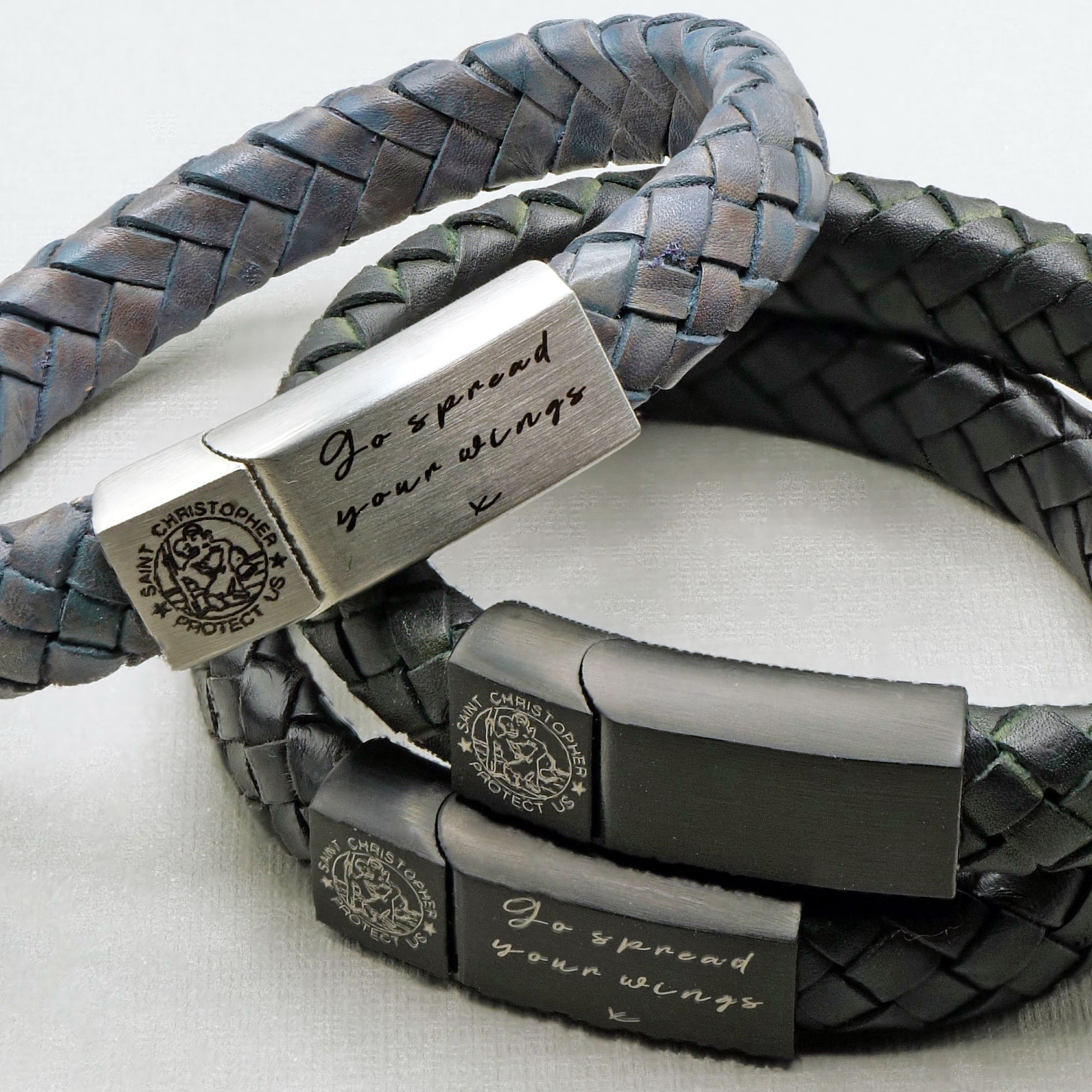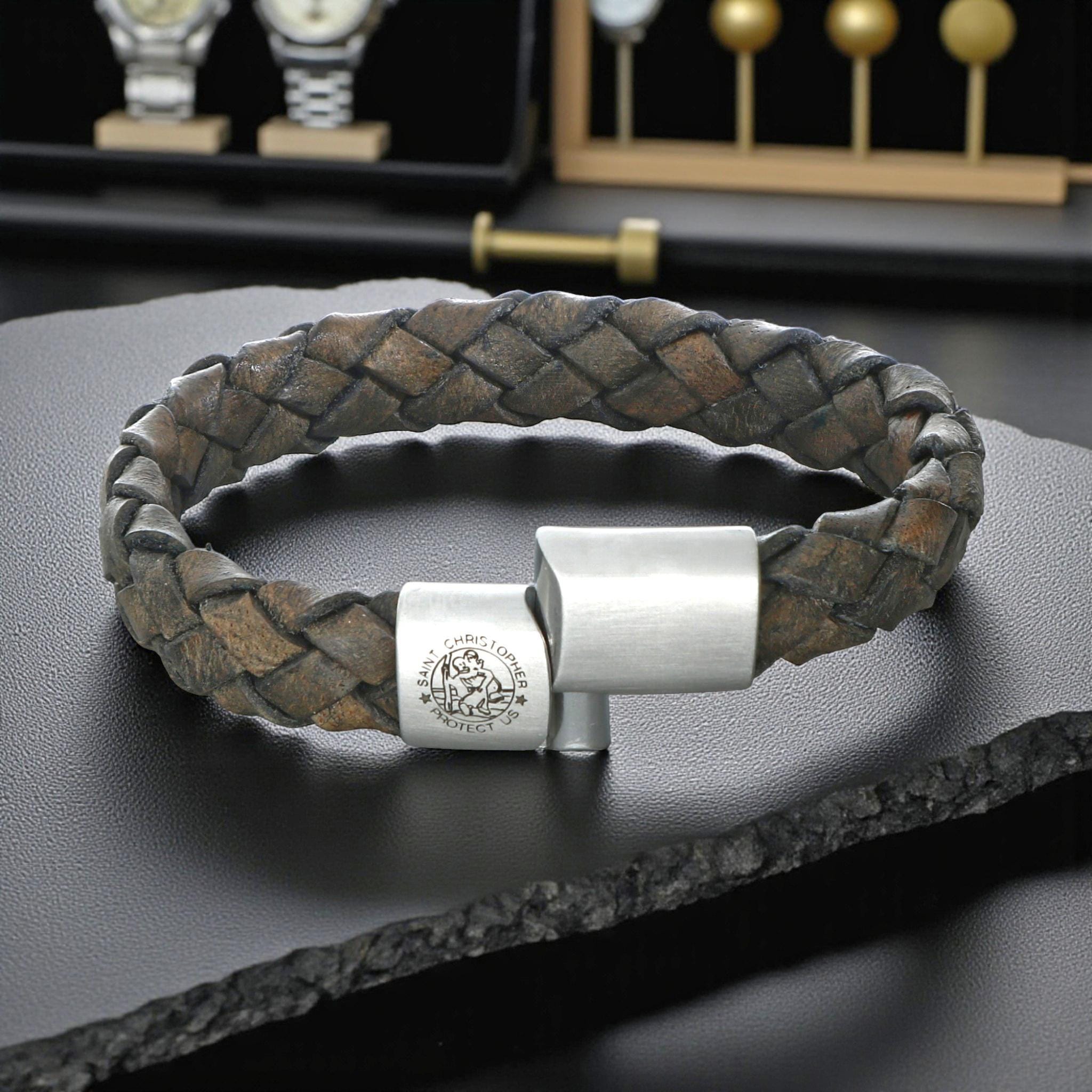 Personalised St Christopher Leather Bracelet - Safe Travels Bracele...