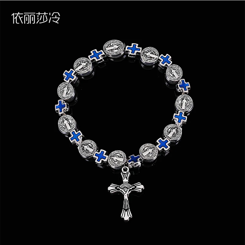 Jesus Cross Bracelet, Jesus Rose Center Holy Mercy Icon Rose Bracelet, Saint Benedict Rosary Cross B...