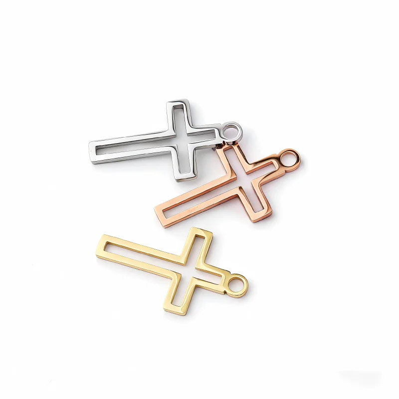 Stainless Steel Gold PVD Plated 19*11mm Hollow Cross Charm Jewelry ...