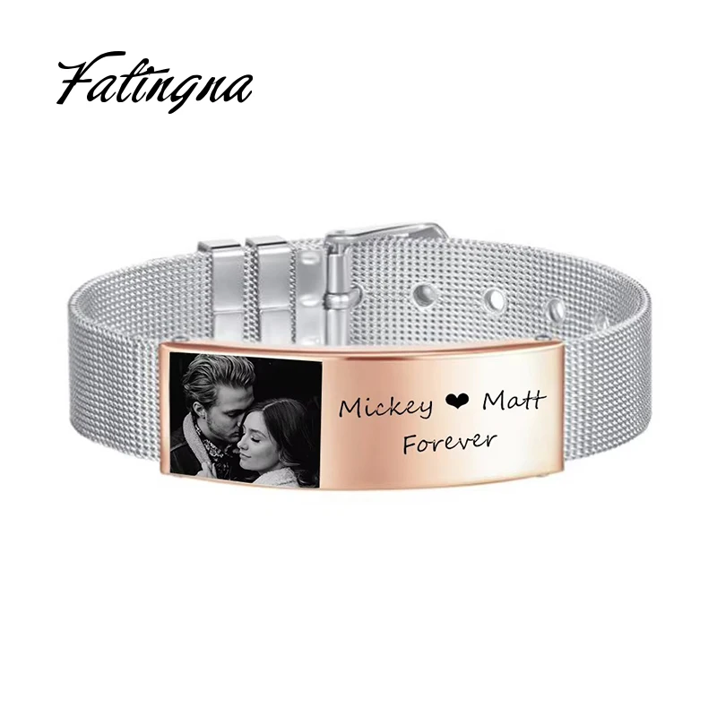 Fatingna Stainless Steel Fashion Bracelet Personalized ID Bangle wi...