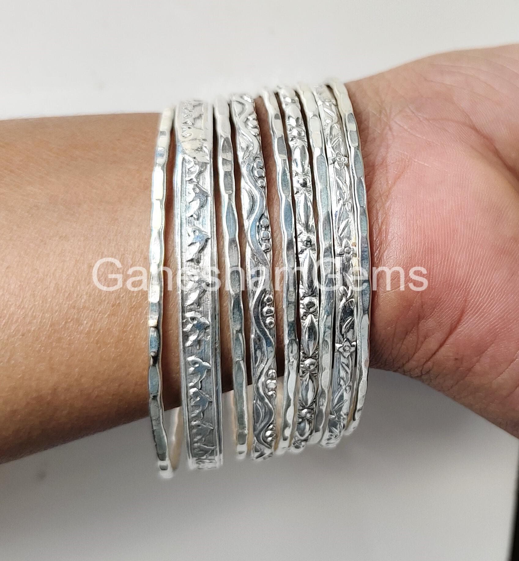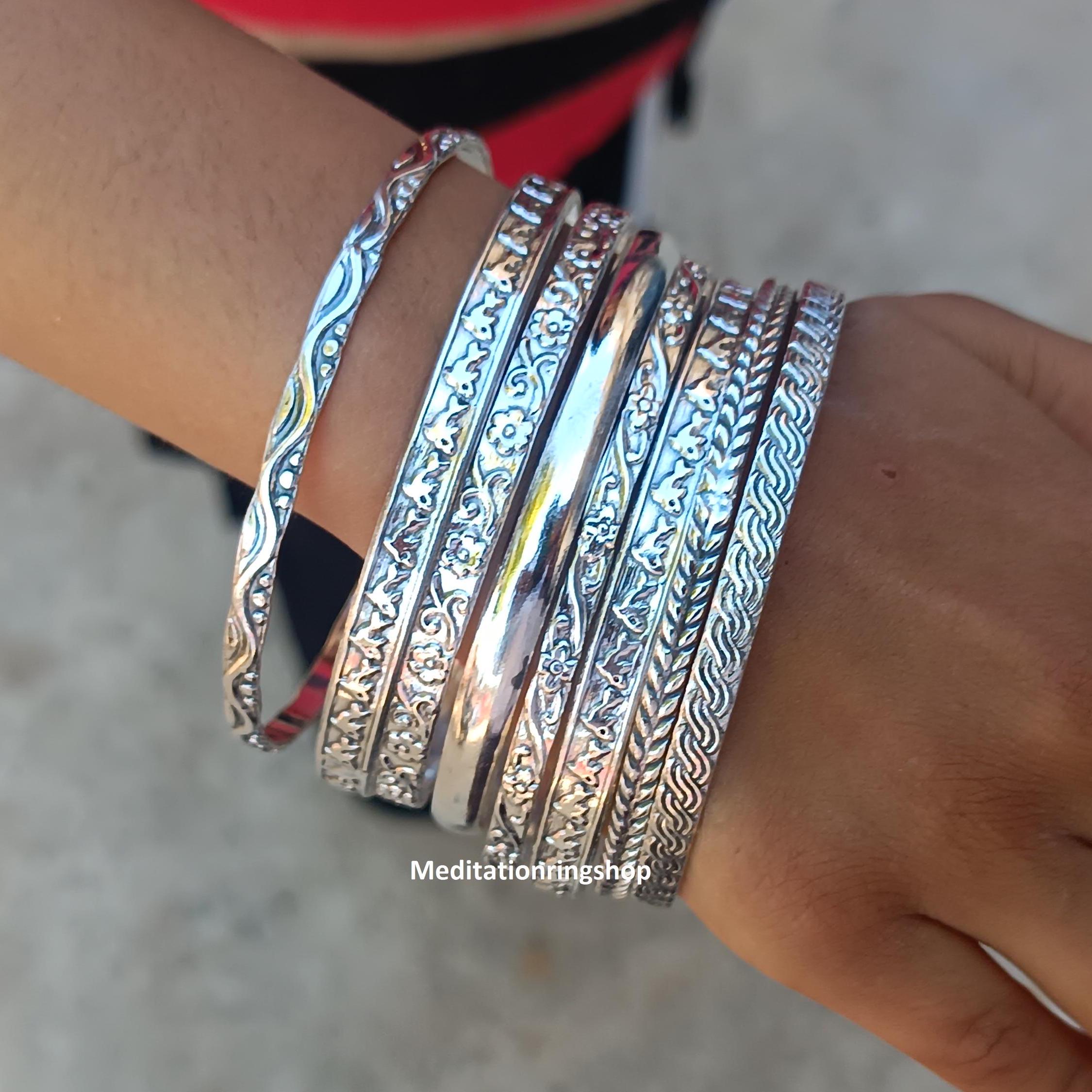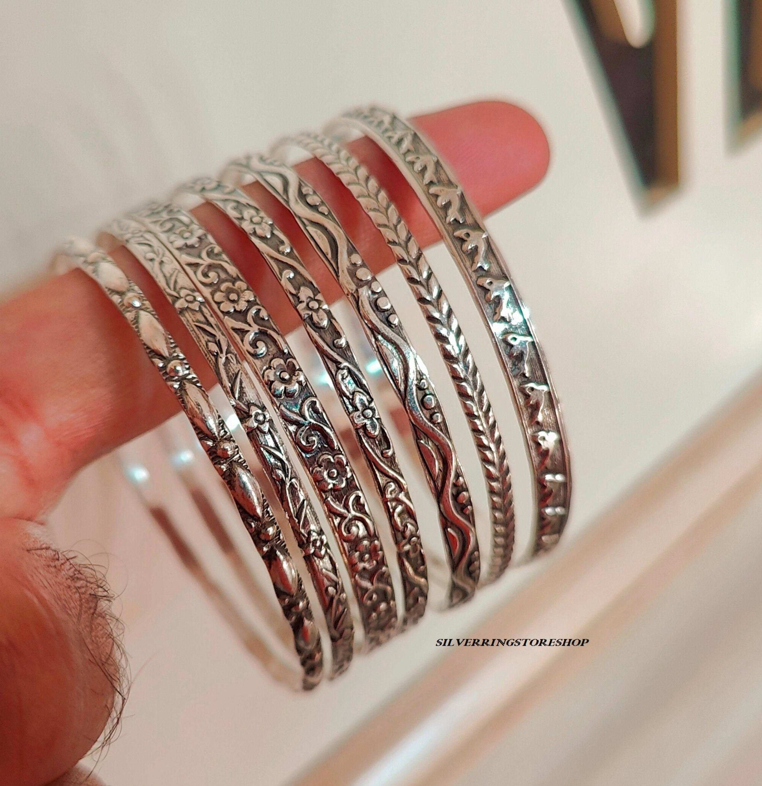 Silver Bangles, Multi Design Indian Siver Bangles, 9 Set of Bangles, Stacking Bangles, Handmade Silv...