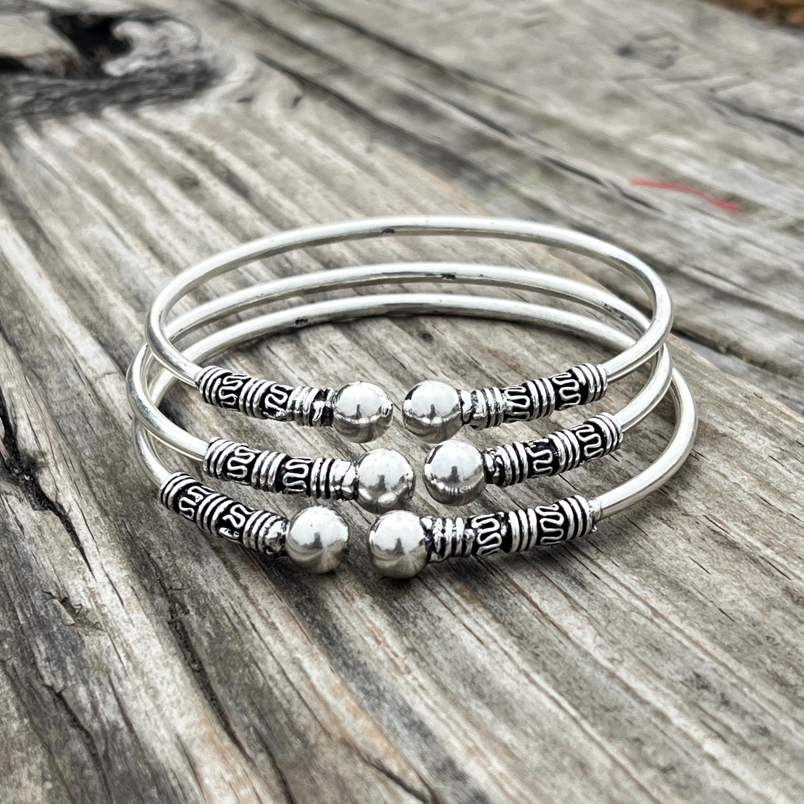 Set of 3 Solid 925 Sterling Silver Bangles For Women, Handmade Silver Bangle, Boho Silver Bangle, Wo...