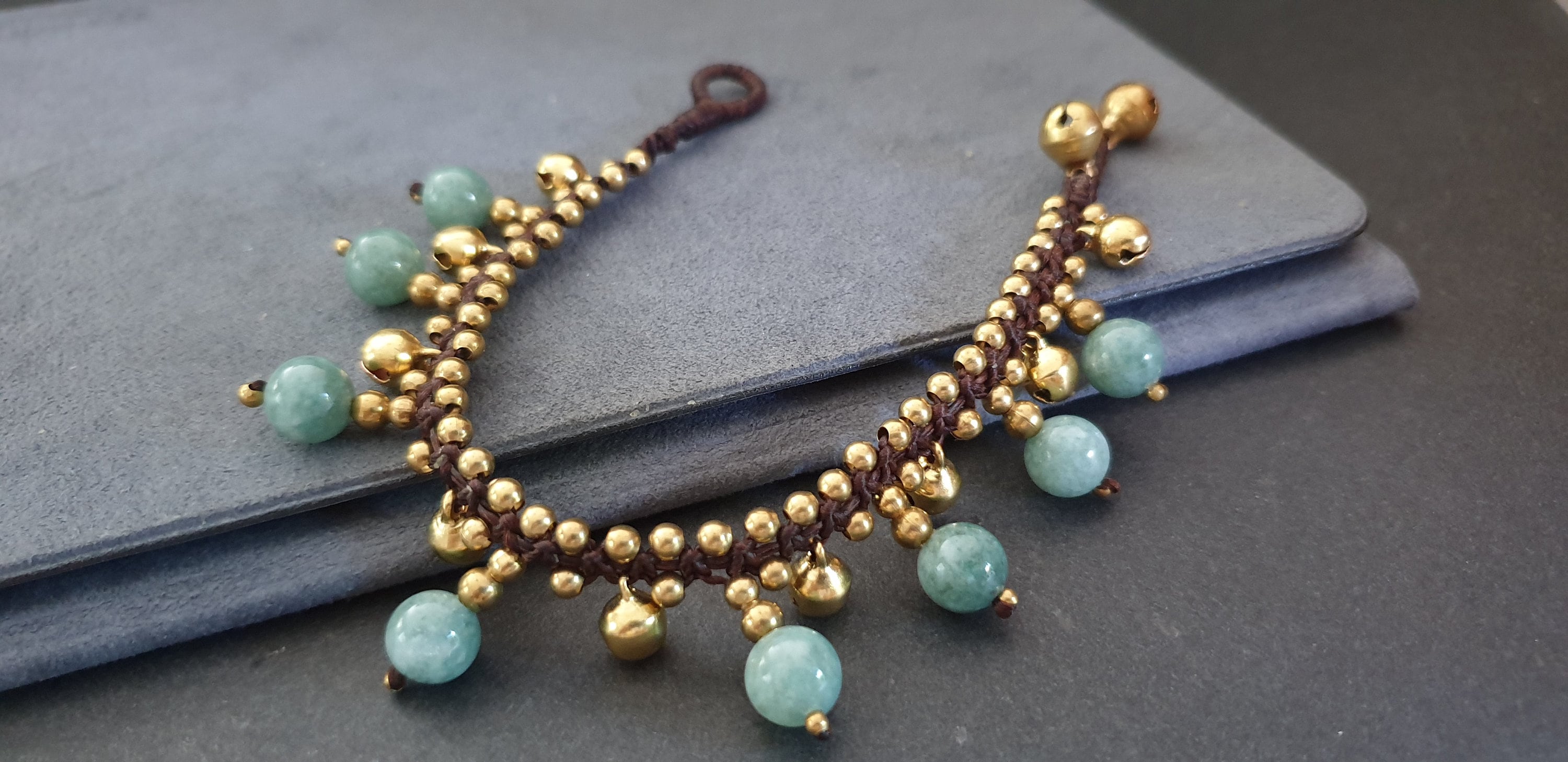 Round Jade Brass Bell Anklet Bracelet Beautiful handmade Bracelet / Anklet , quality handmade Lightw...