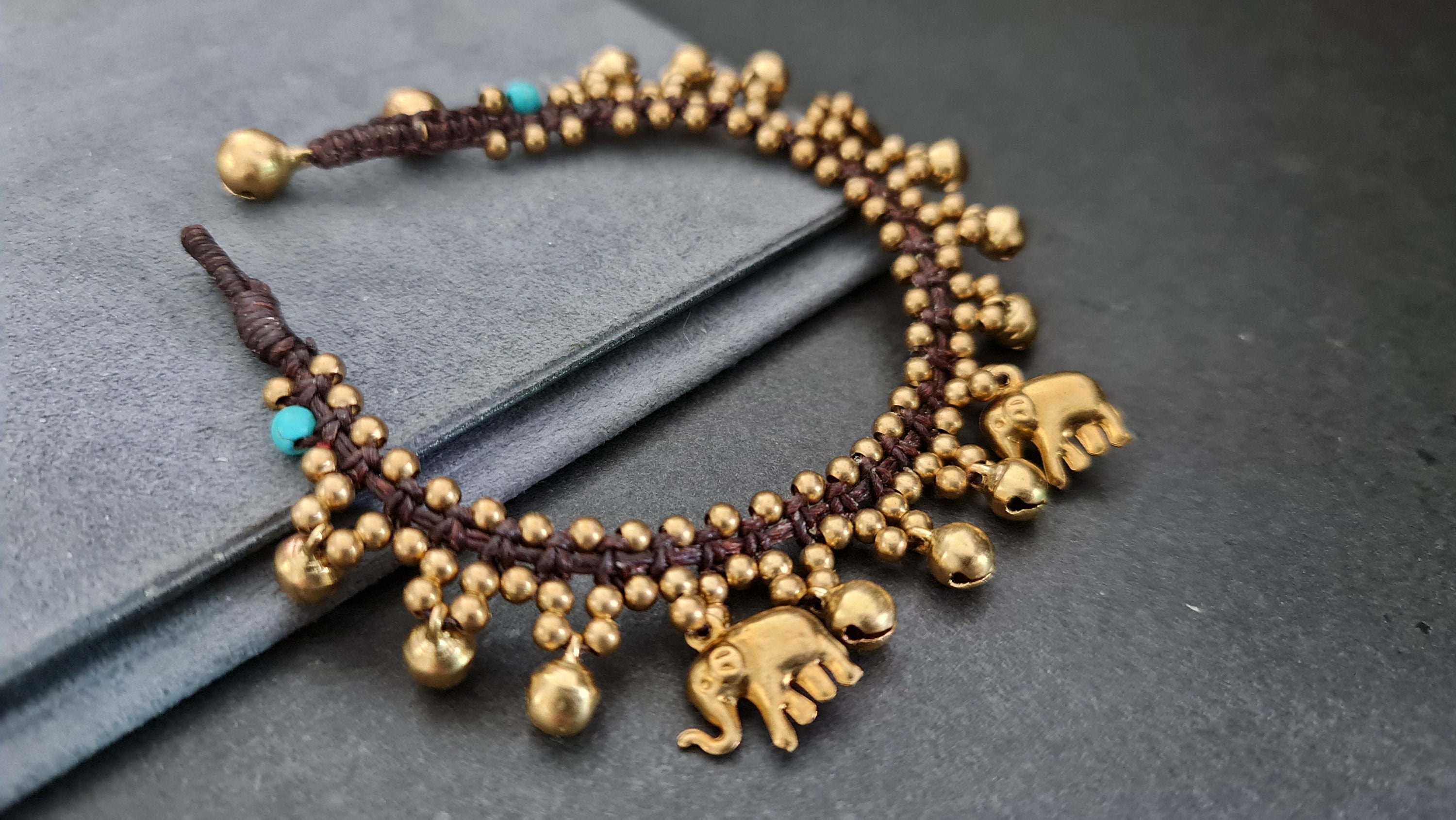 Brass Beads Bell Elephant Bracelet,Beaded Bracelet, Brass Anklet, W...