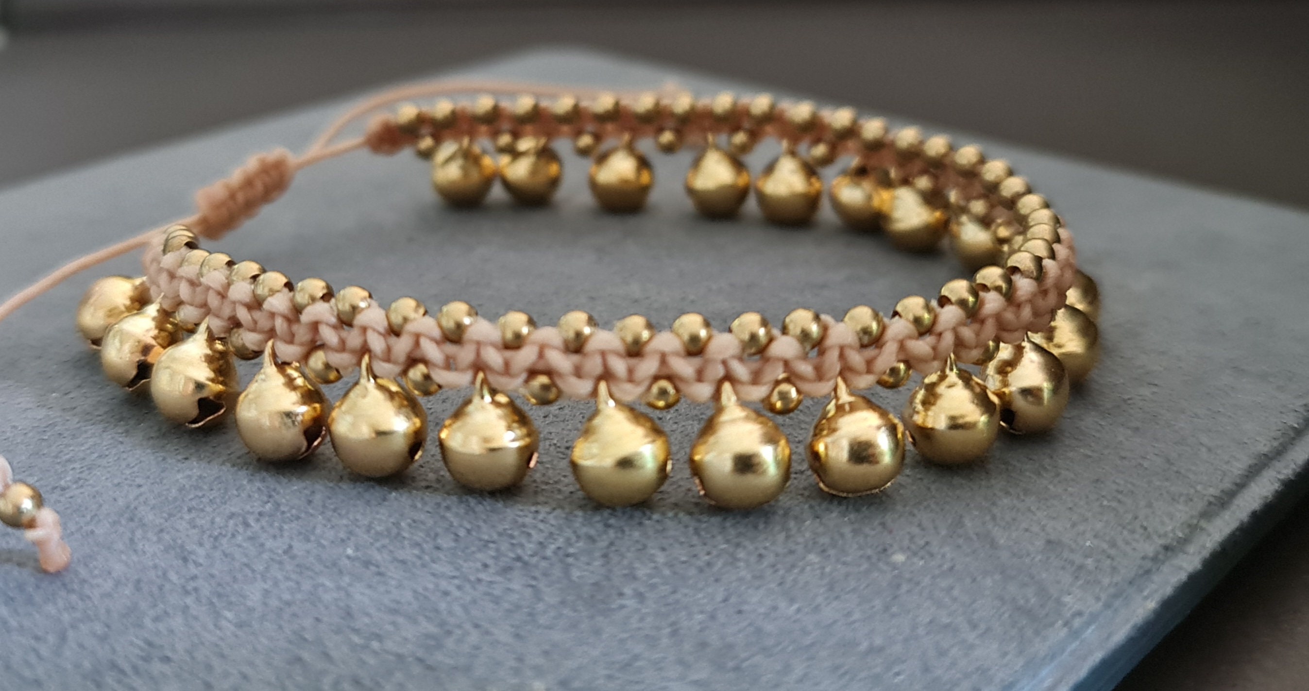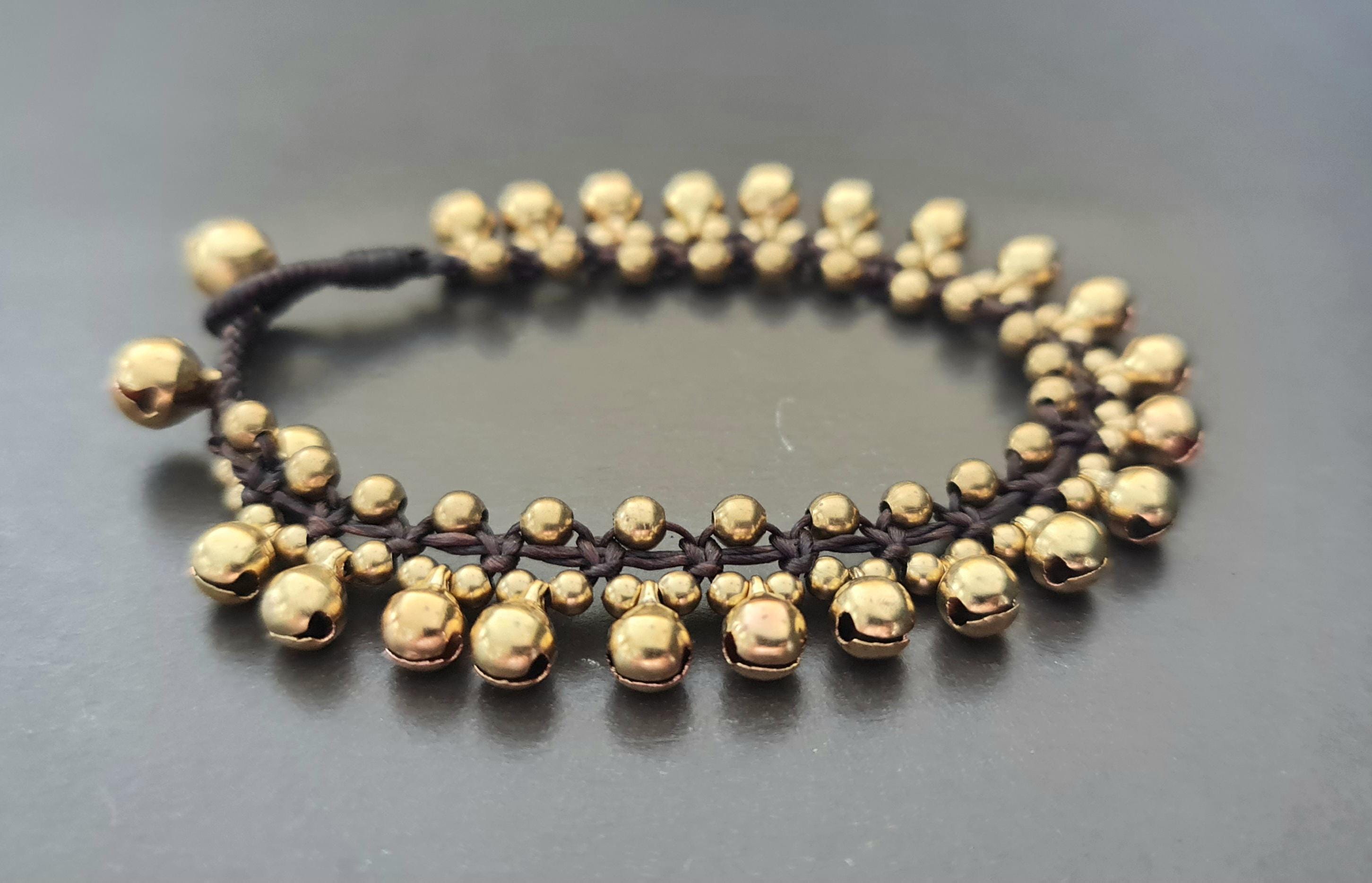 Brass Bells Adjustable Woven Brass Jewelry Bracelet Anklet, Women Bracelet, Bracelet Anklet, Brass B...