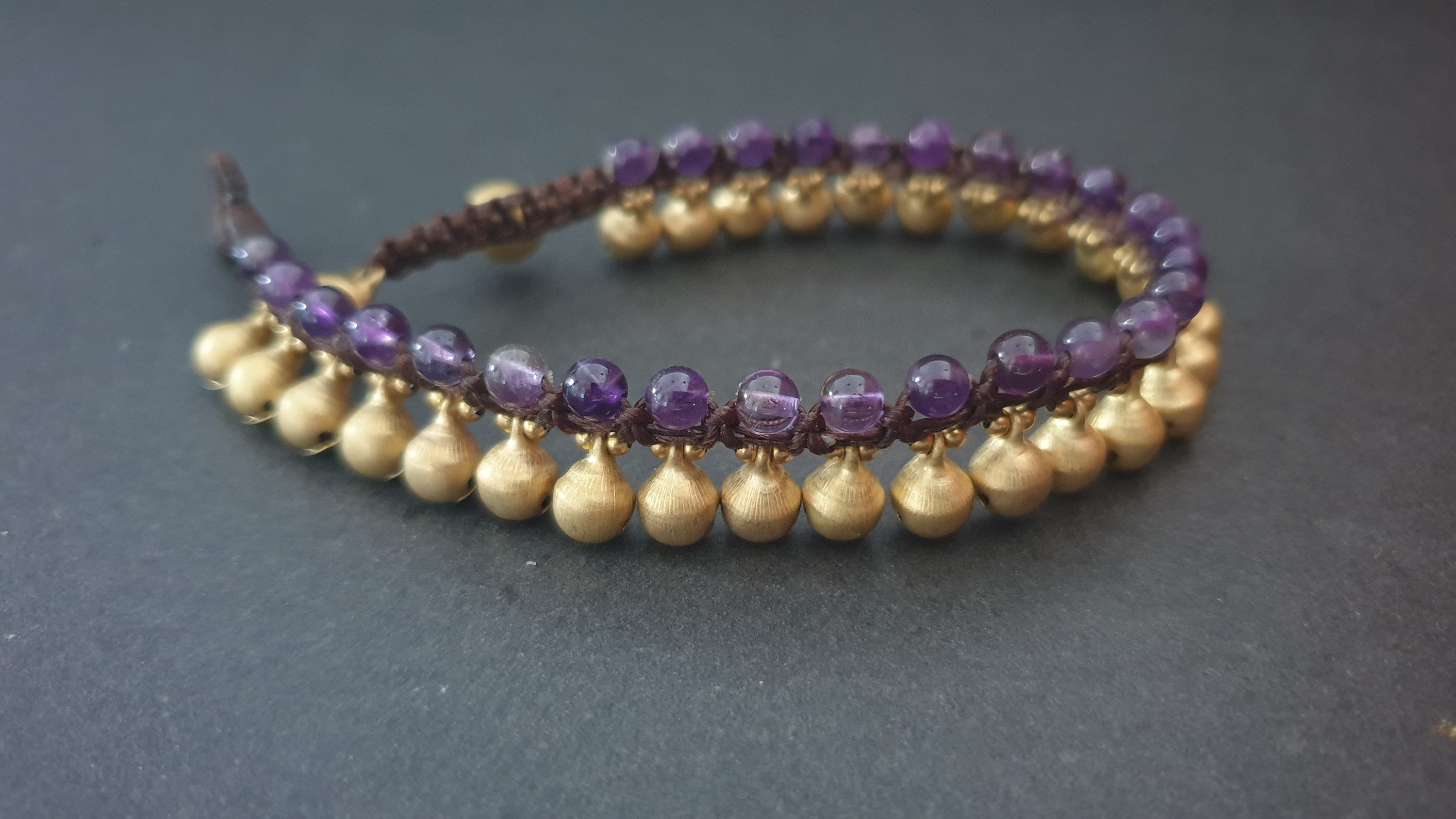 4mm Round Stone Brass Bells Anklet Bracelet **The photo showing is 6mm bells** Beautiful handmade Br...