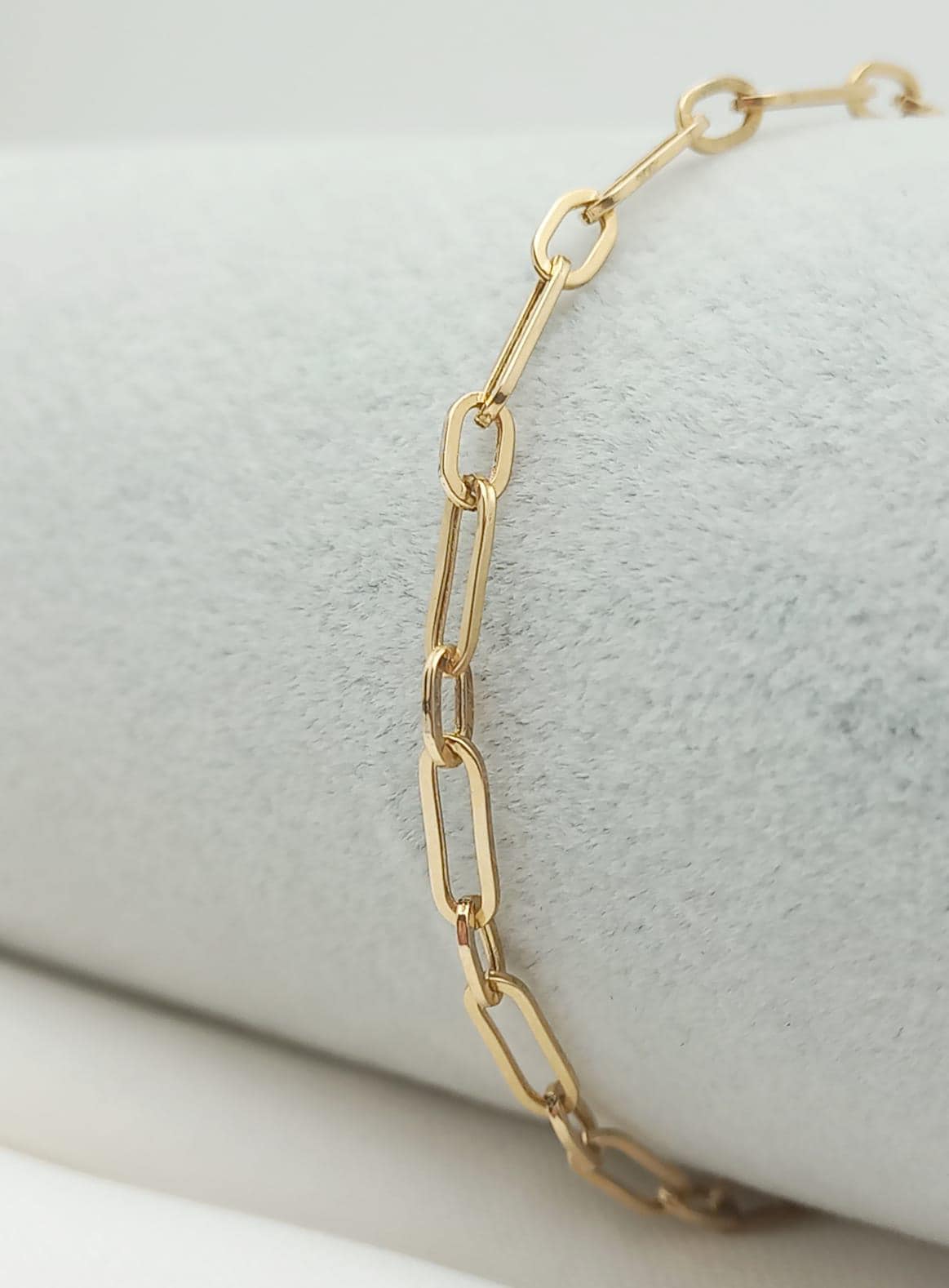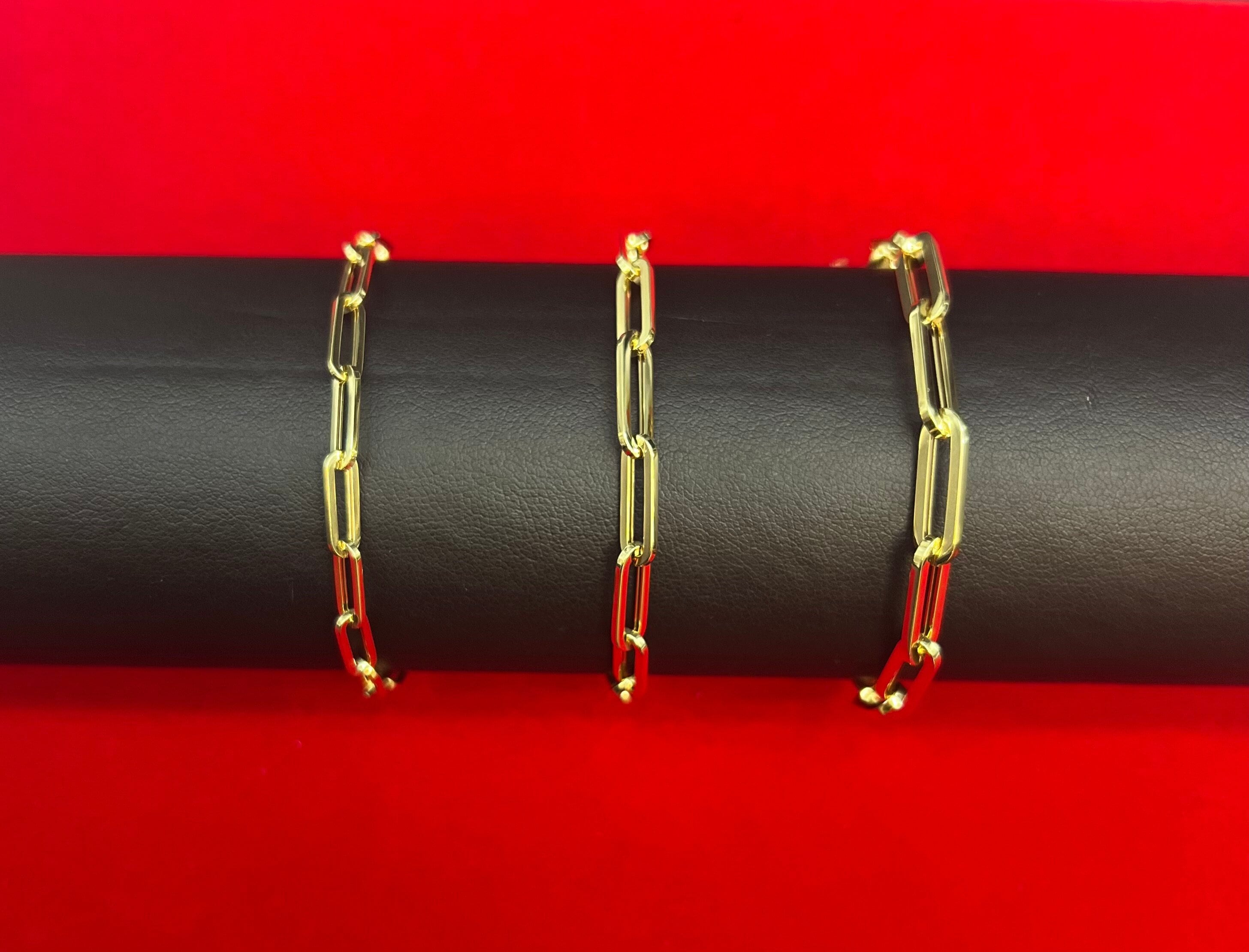 Real 14k Gold Paperclip Chain Bracelet, 14k Gold Paperclips Bracele...