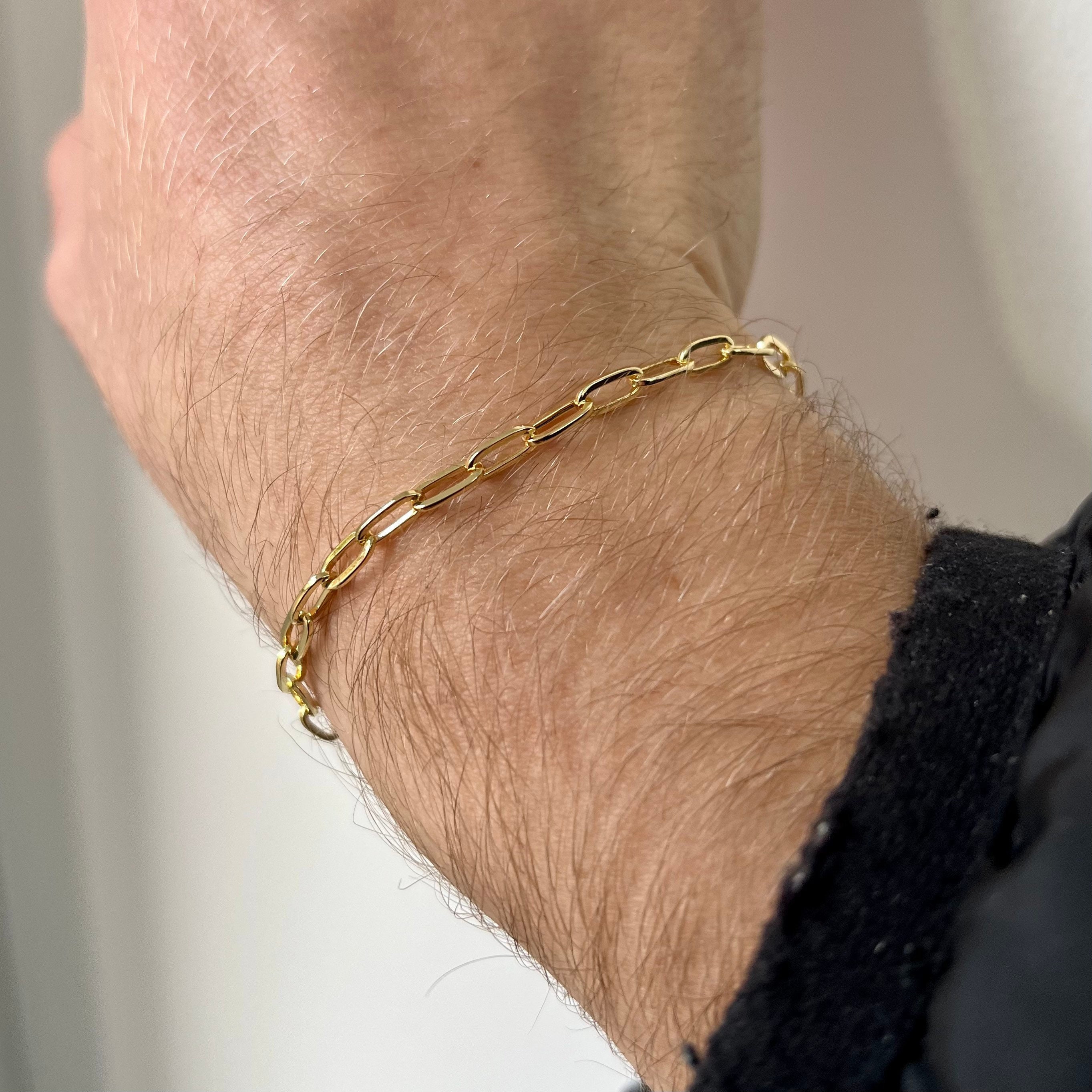 "18K Gold Paper Clip Bracelet (3mm) - This is a Unisex Bracelet. The Thin Gold Paperclip Bracel...