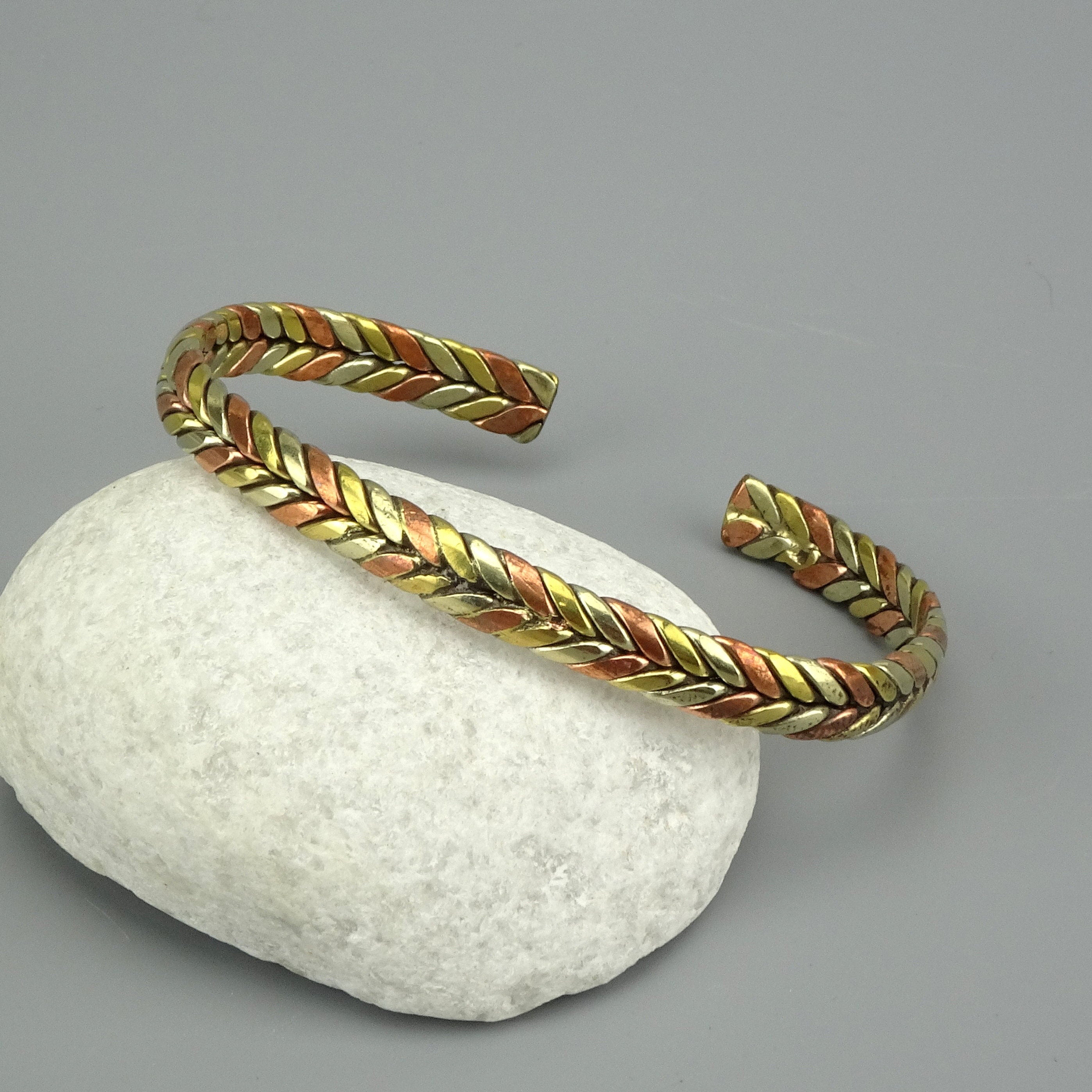 Tibetan braided bracelet made of three metals: copper, bronze, and ...