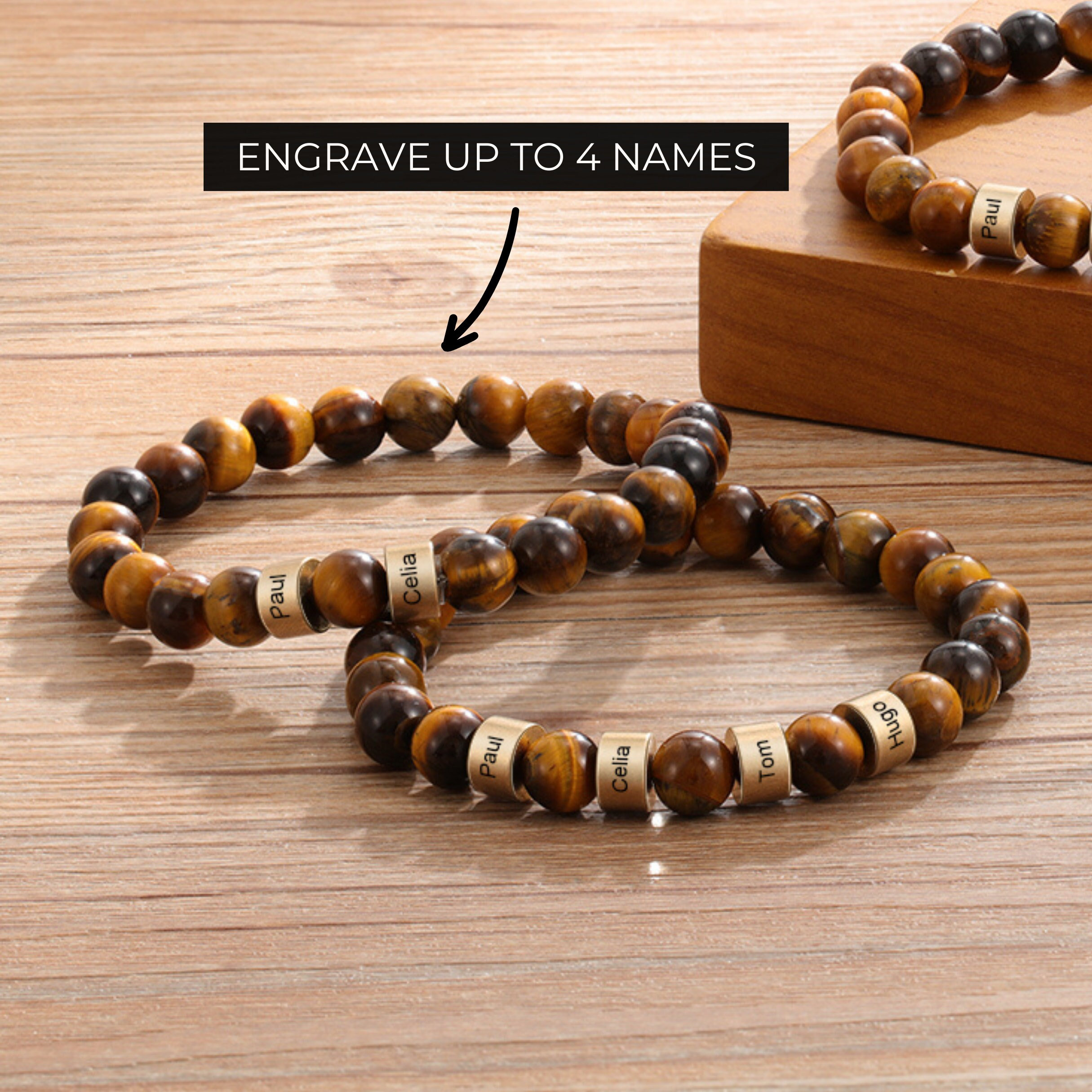 "Personalized Tiger Eye Bracelet -- a sleek, meaningful keepsake that blends style and sentimen...
