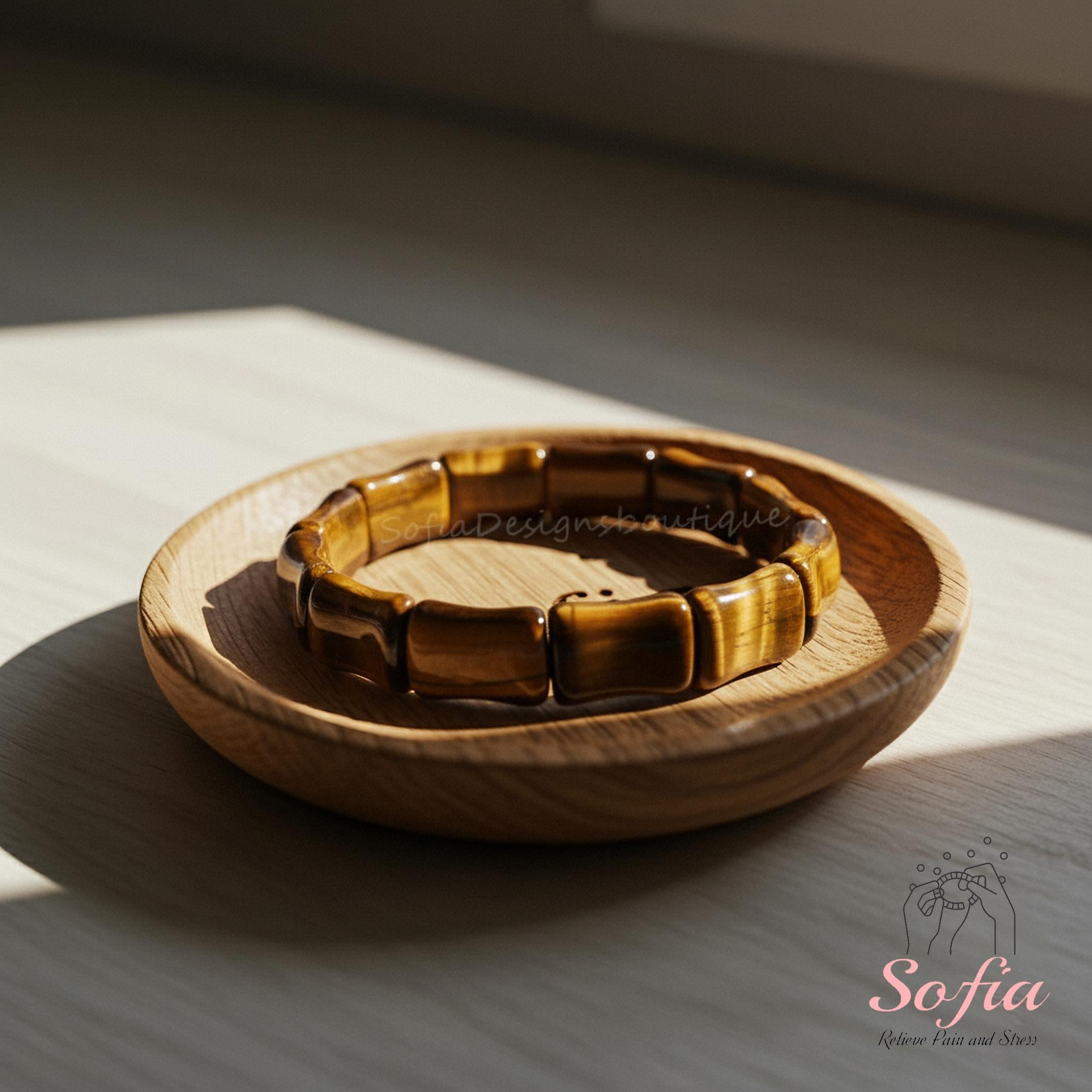 This tiger eye stone bracelet is a stunning accessory that will brighten up your wrist and your mood...