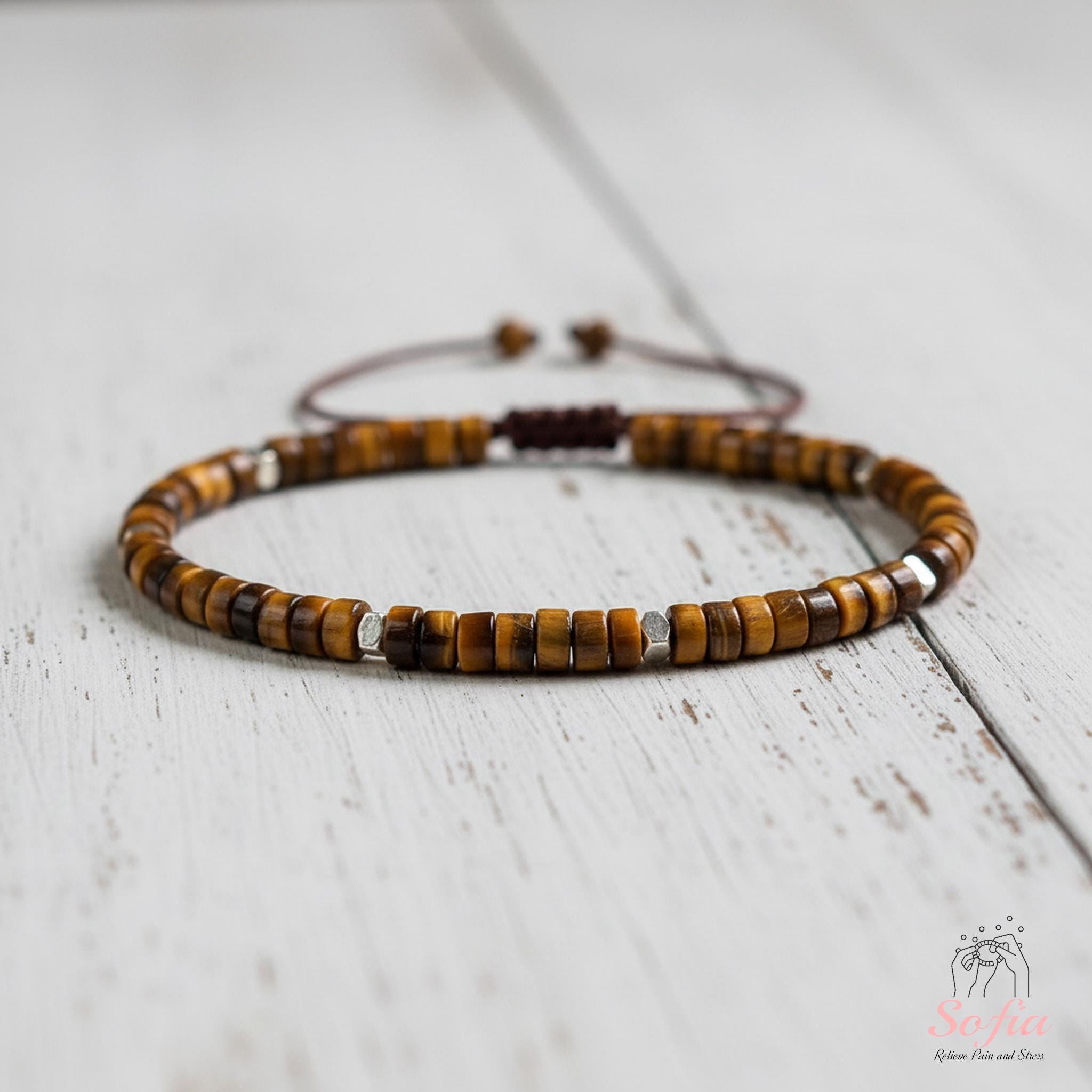 Tiger's Eye Stone Dainty Bracelet - Natural Tiger Eye Gemstone Brai...