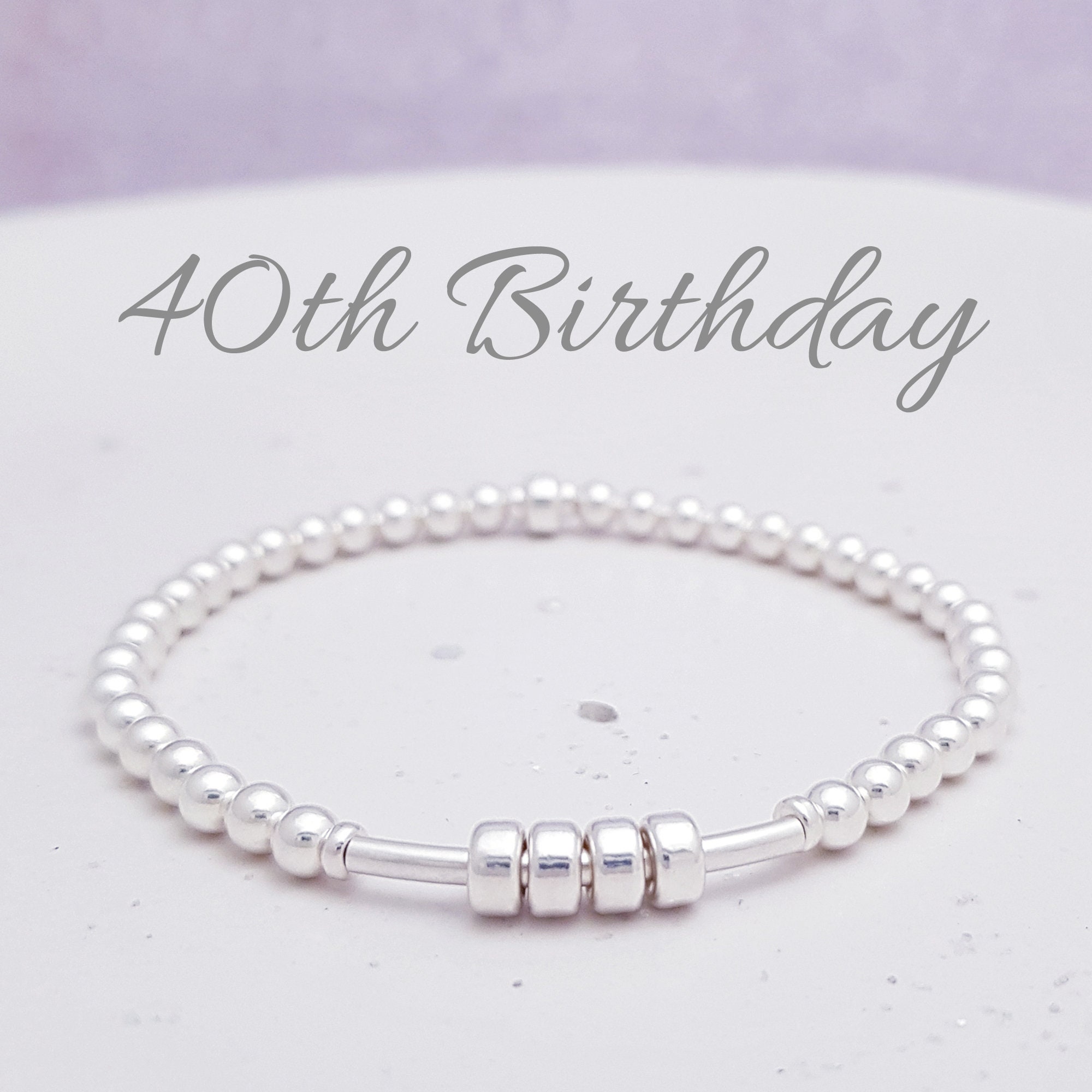 Silver 40th birthday bracelet. 40th birthday gift. 40th milestone b...
