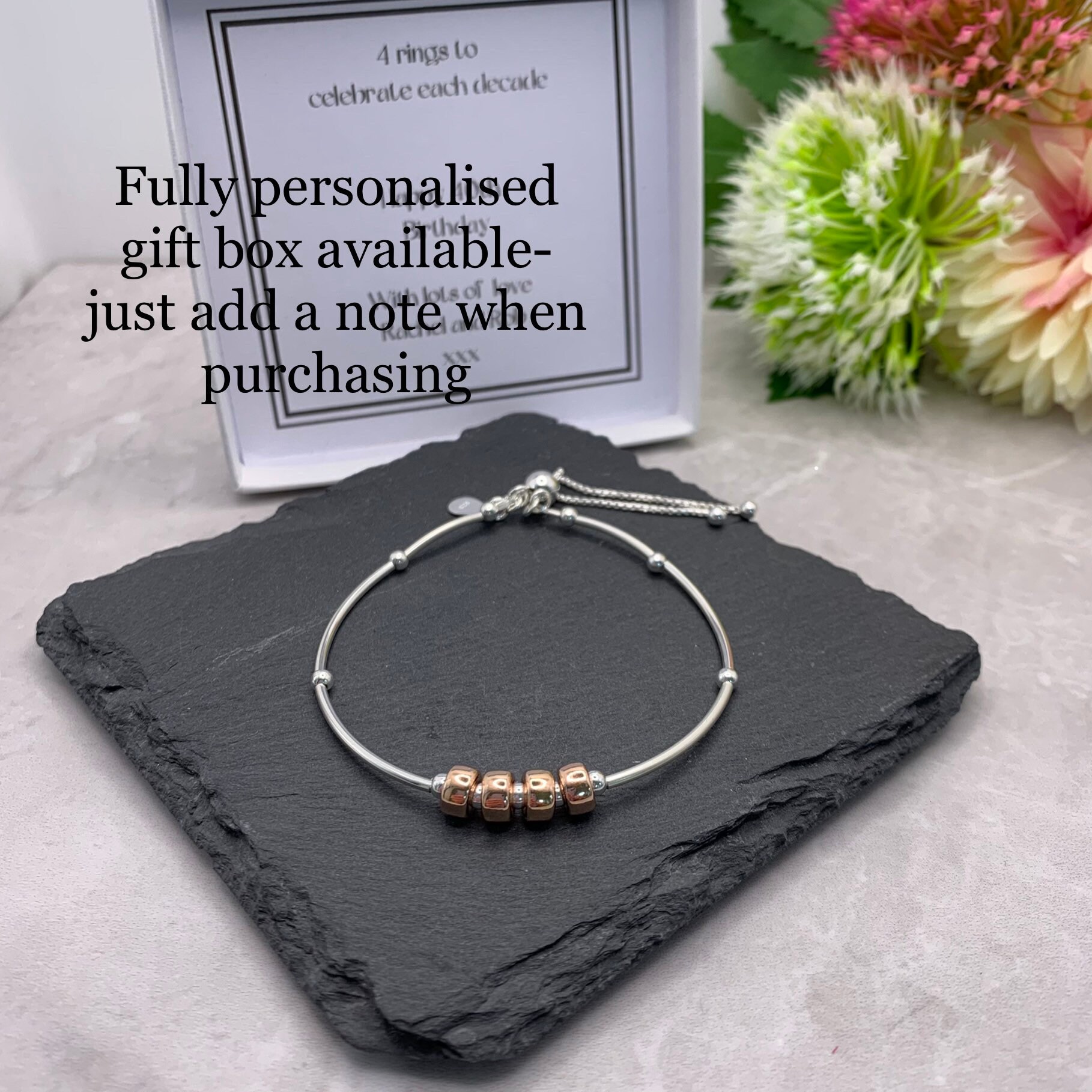 40th Birthday Silver Link Rings Bracelet, Handmade Personalised 40t...