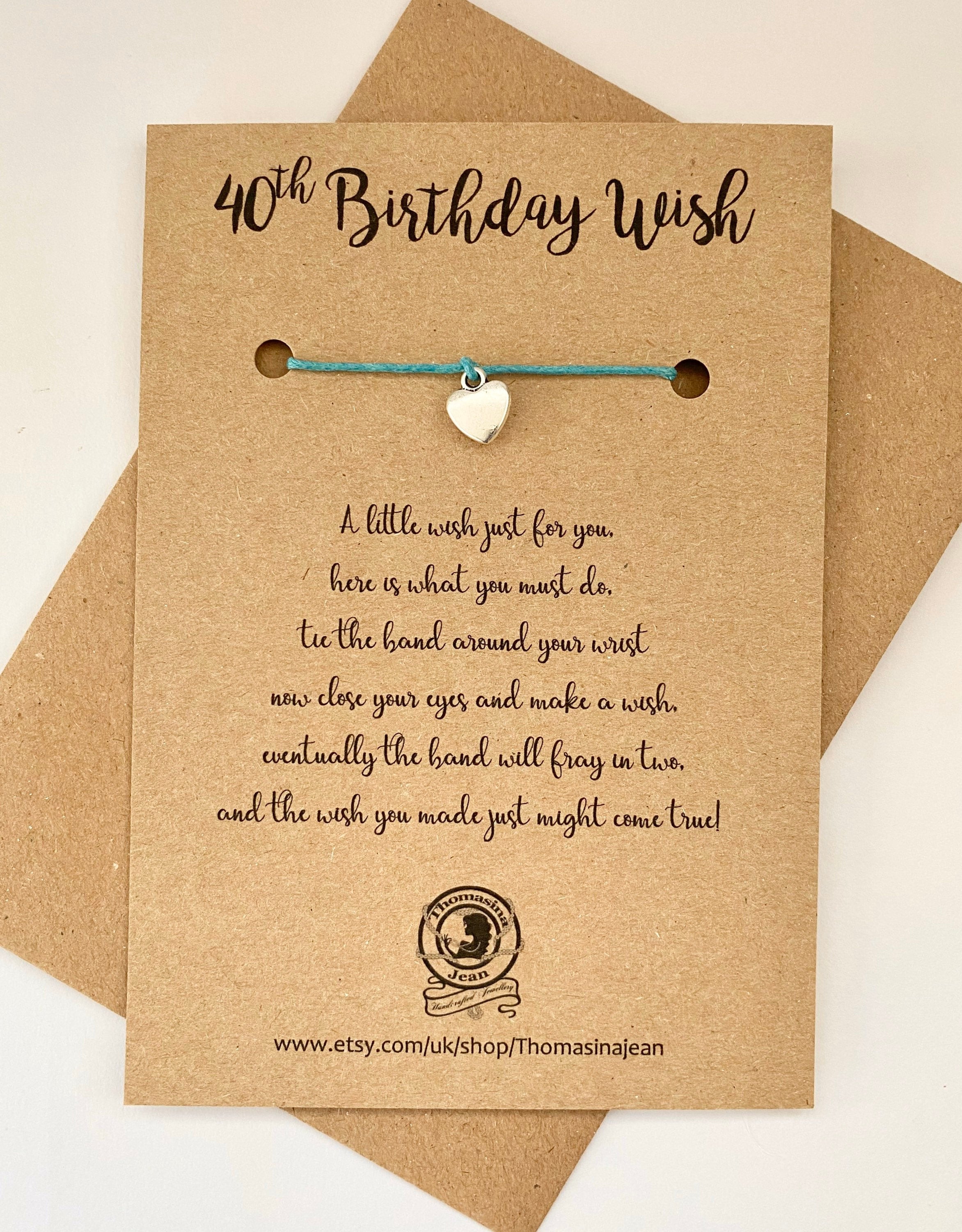 40TH BIRTHDAY WISH BRACELET, 40TH Birthday Card, 40TH Birthday Gift...