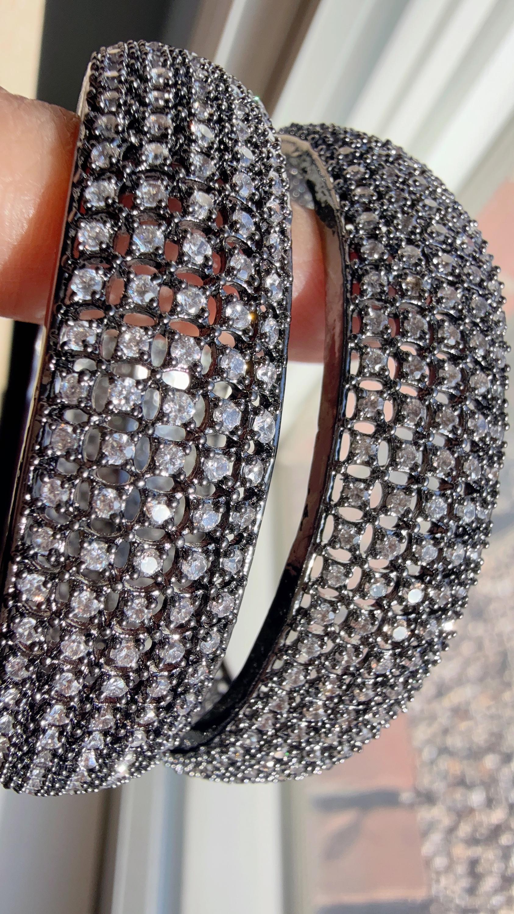 Black Finish American Diamond/CZ Bangles/Bracelet/Indian Party Wear Bangles/ CZ stone bangles/Indian...