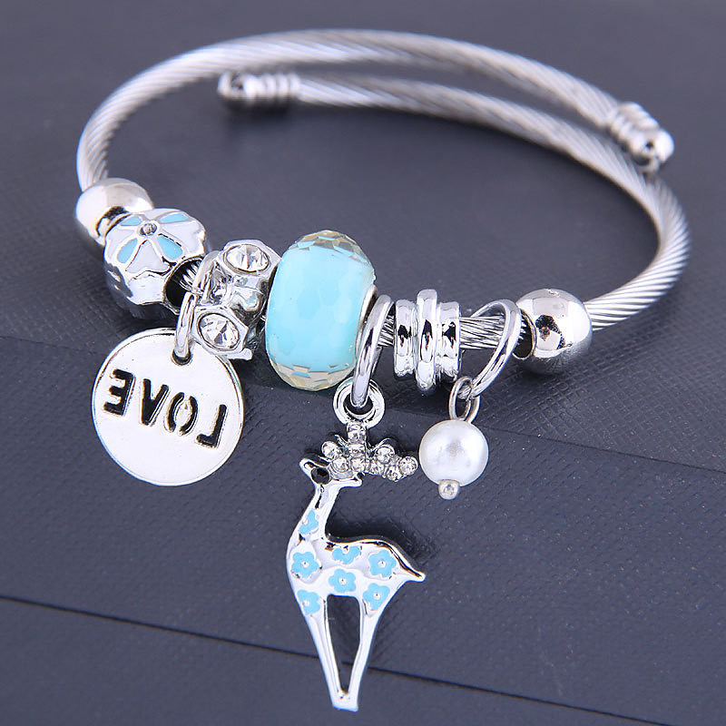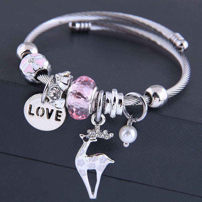 Charming Silver Bracelet with LOVE Pendant and Reindeer Charm, Adju...