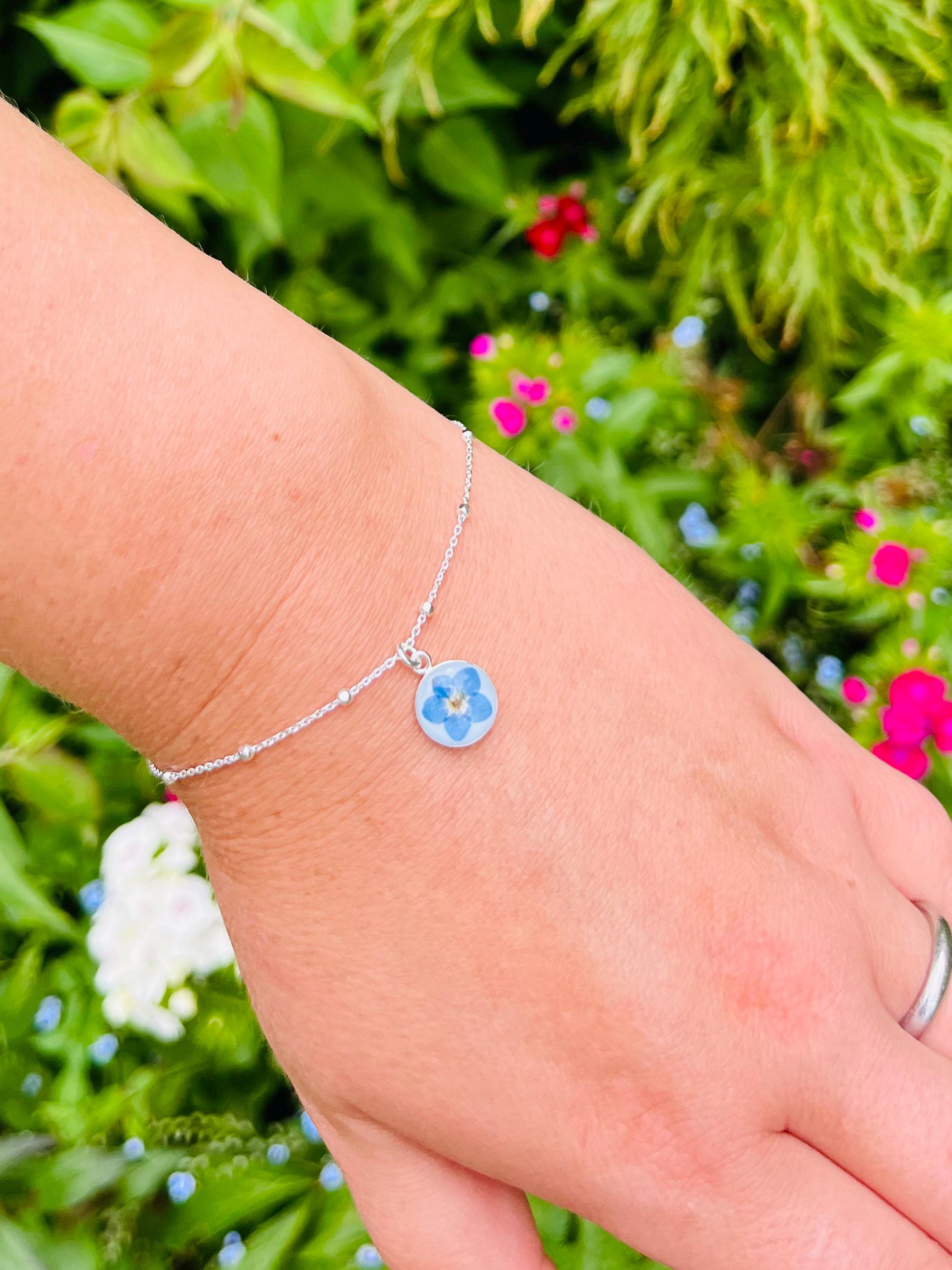 Real Pressed Flower Bracelet, Forget Me Not Bracelet, Silver Forget...