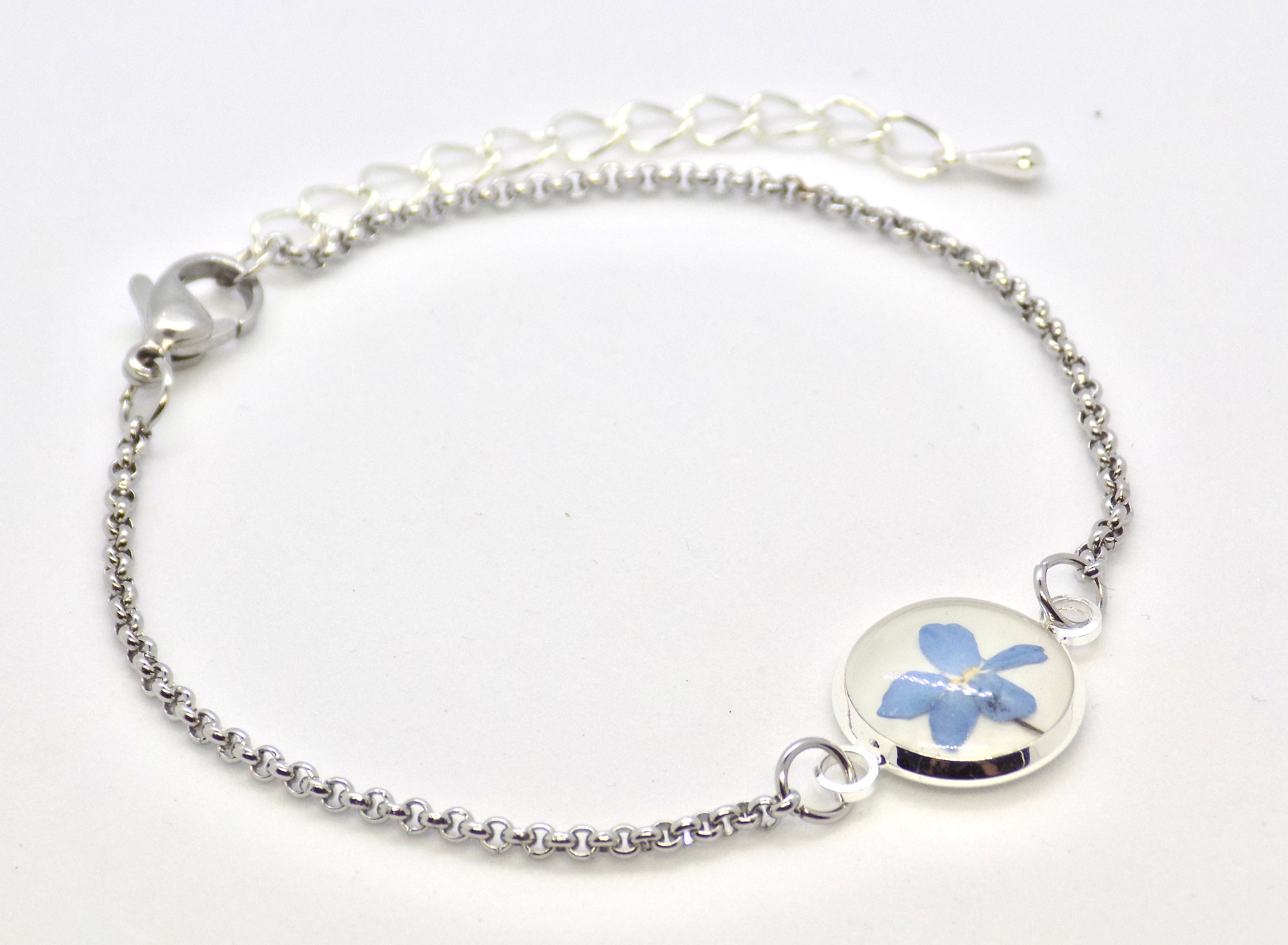 Dainty Stainless Steel Flower Bracelet With Real Pressed Forget Me ...