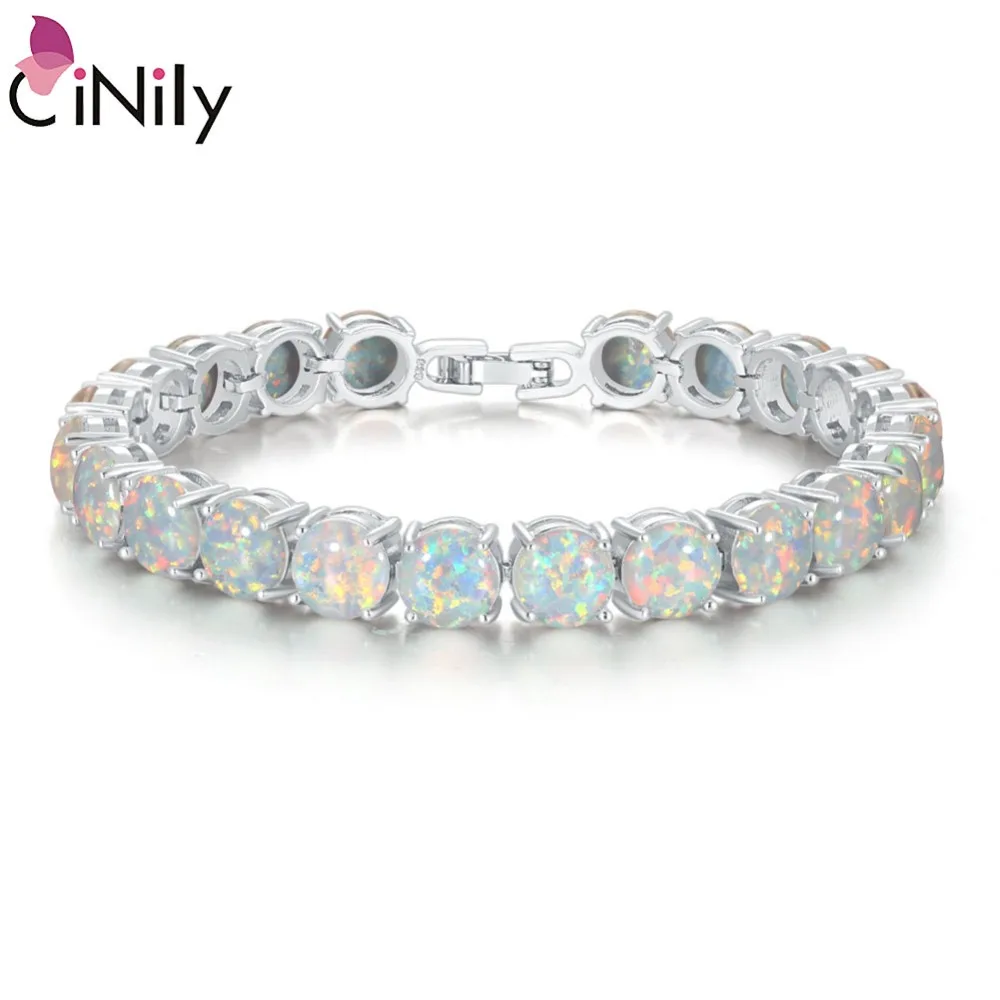 CiNily White Fire Opal Stone Chain Link Bracelet&Bangles Silver Plated Luxury Larger Boho Bohemi...