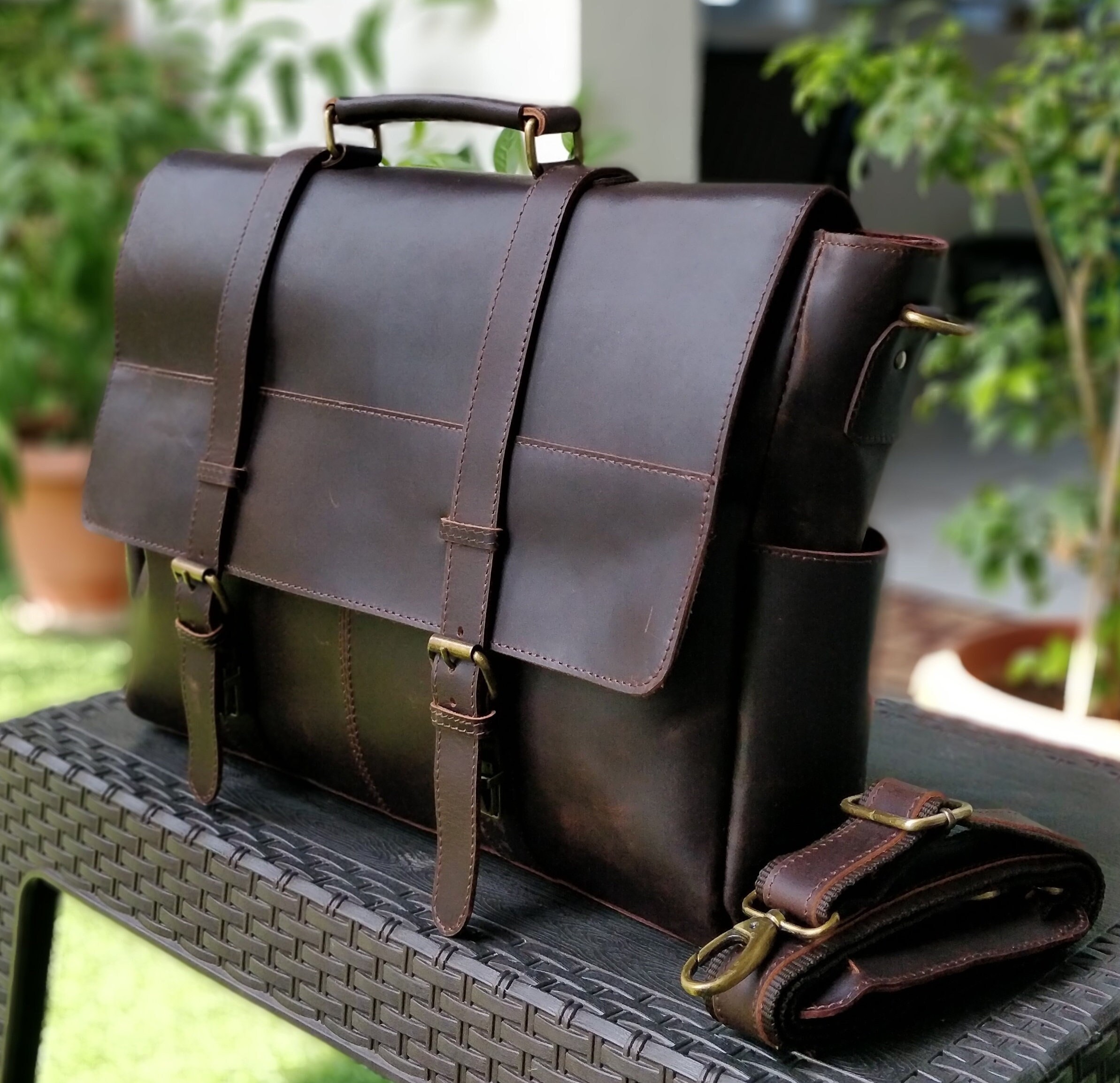 Leather briefcase men 100% full grain Leather Briefcase 100% Authentic: A Handcrafted leather Bag of...