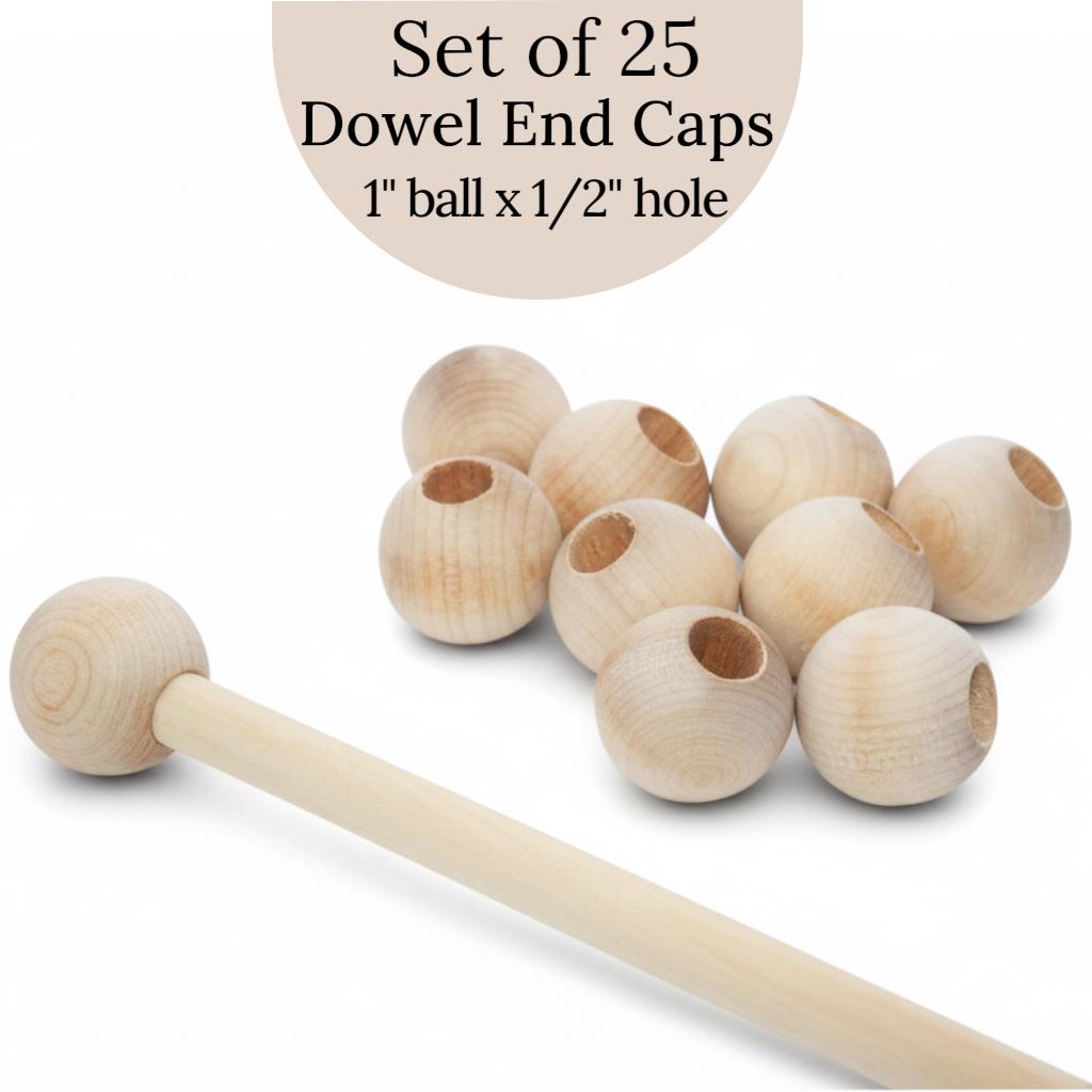 "These wood dowel end caps work well with a 1/2\" dowel. Each cap has a 1/2\" hole dr...