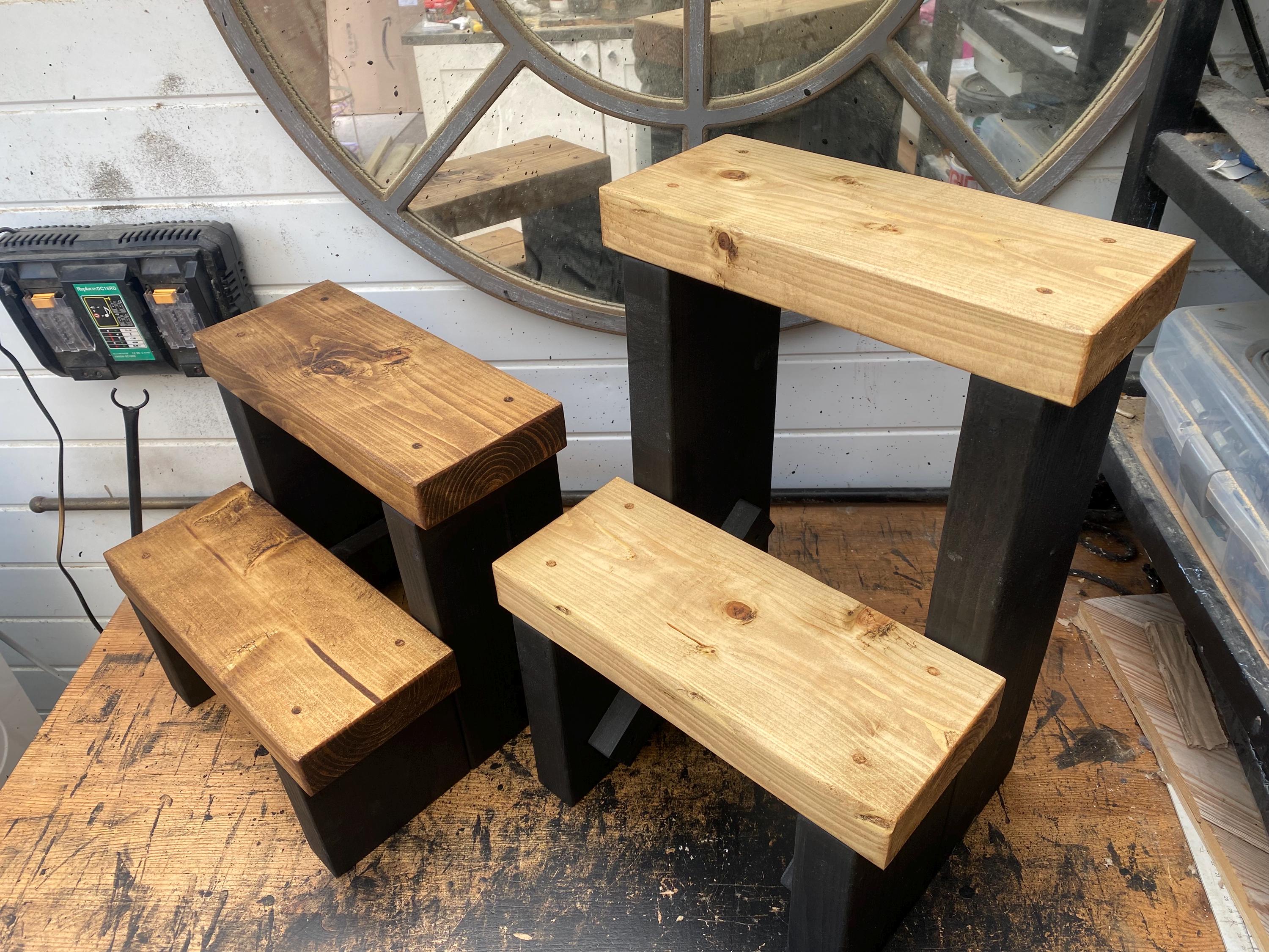 2 tread solid wooden step. Made from reclaimed rough grade pine. Sourced from a local timber frame h...