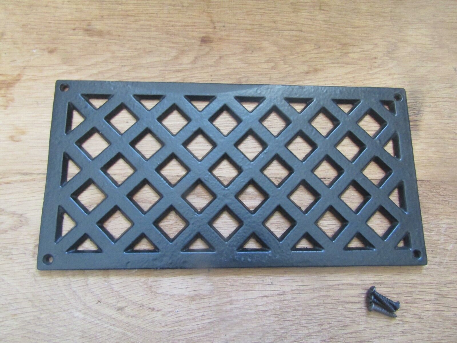 "Black antique cast iron air vent/repair cover c/w screws width 12\" height 6\" thick...