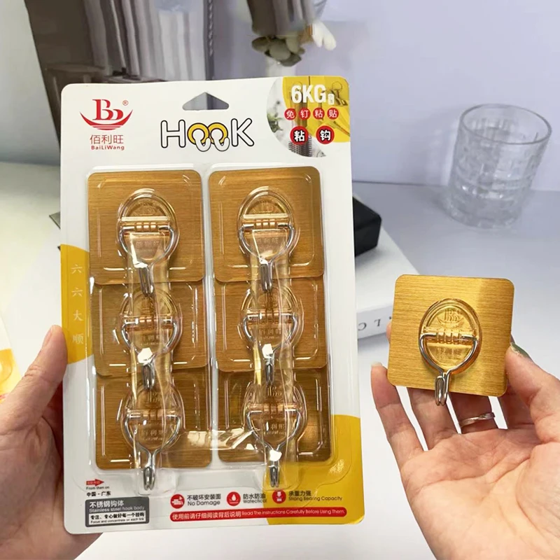 Wholesale 6pcs Square Plastic Adhesive Wall Hooks Punch-Free Strong...