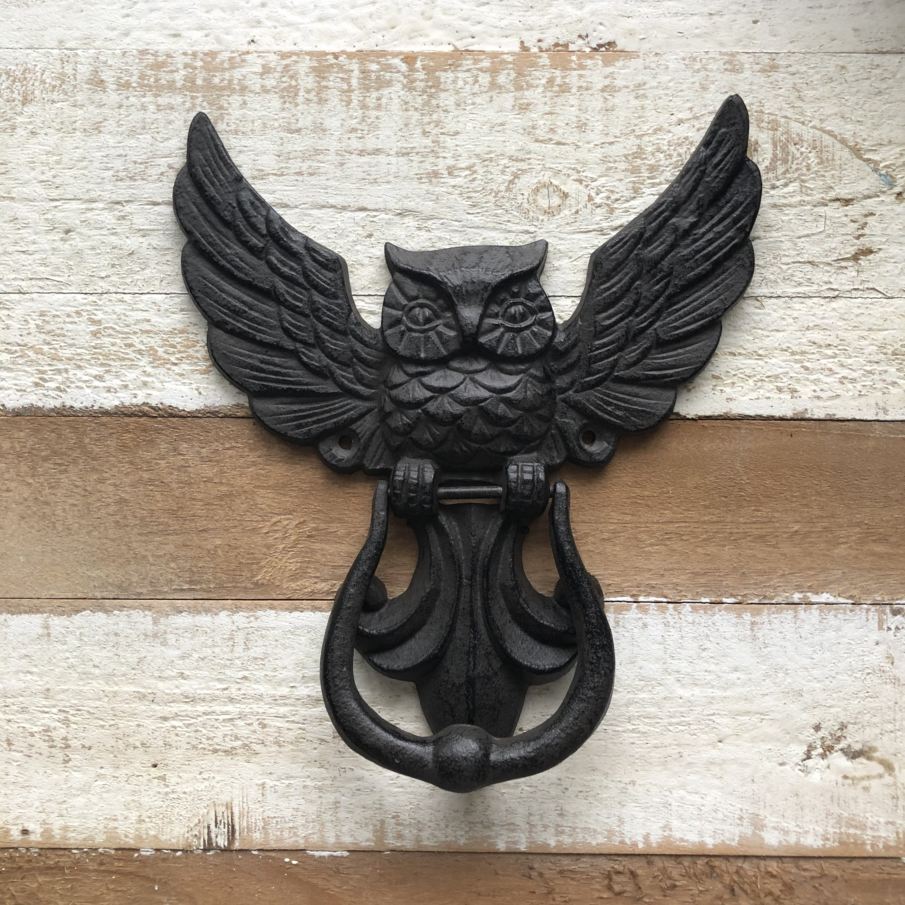 Large Owl Door Knocker, Flying Owl, Stretched Wings, Black Cast Iron, Owl Handle Price is for delive...