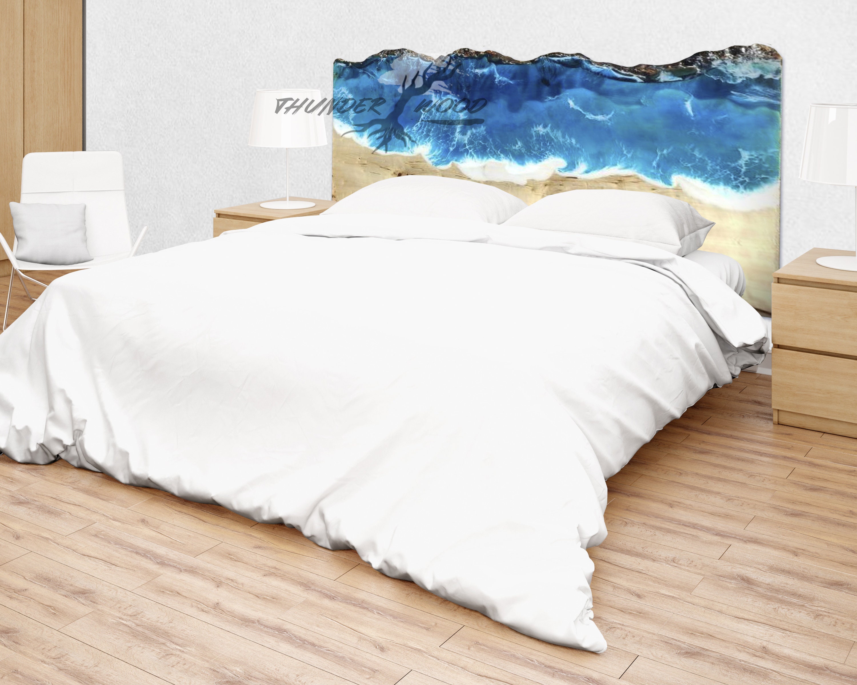 Ocean Epoxy Resin Headboard, Live Edge Wood Wall Mounted Bed Headbo...