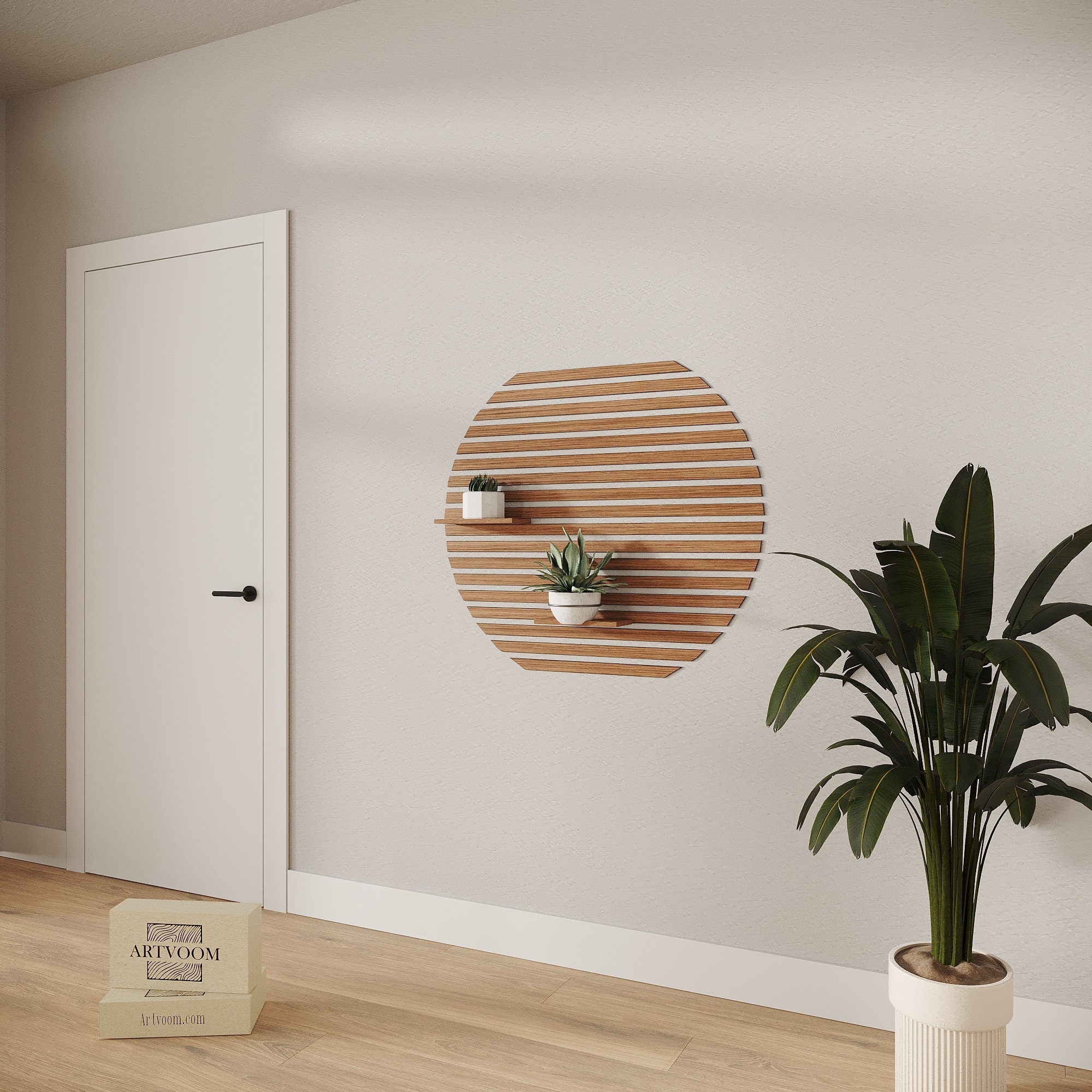 Slat circle, wood slats wall panel, accent wall, decorative wall pa...