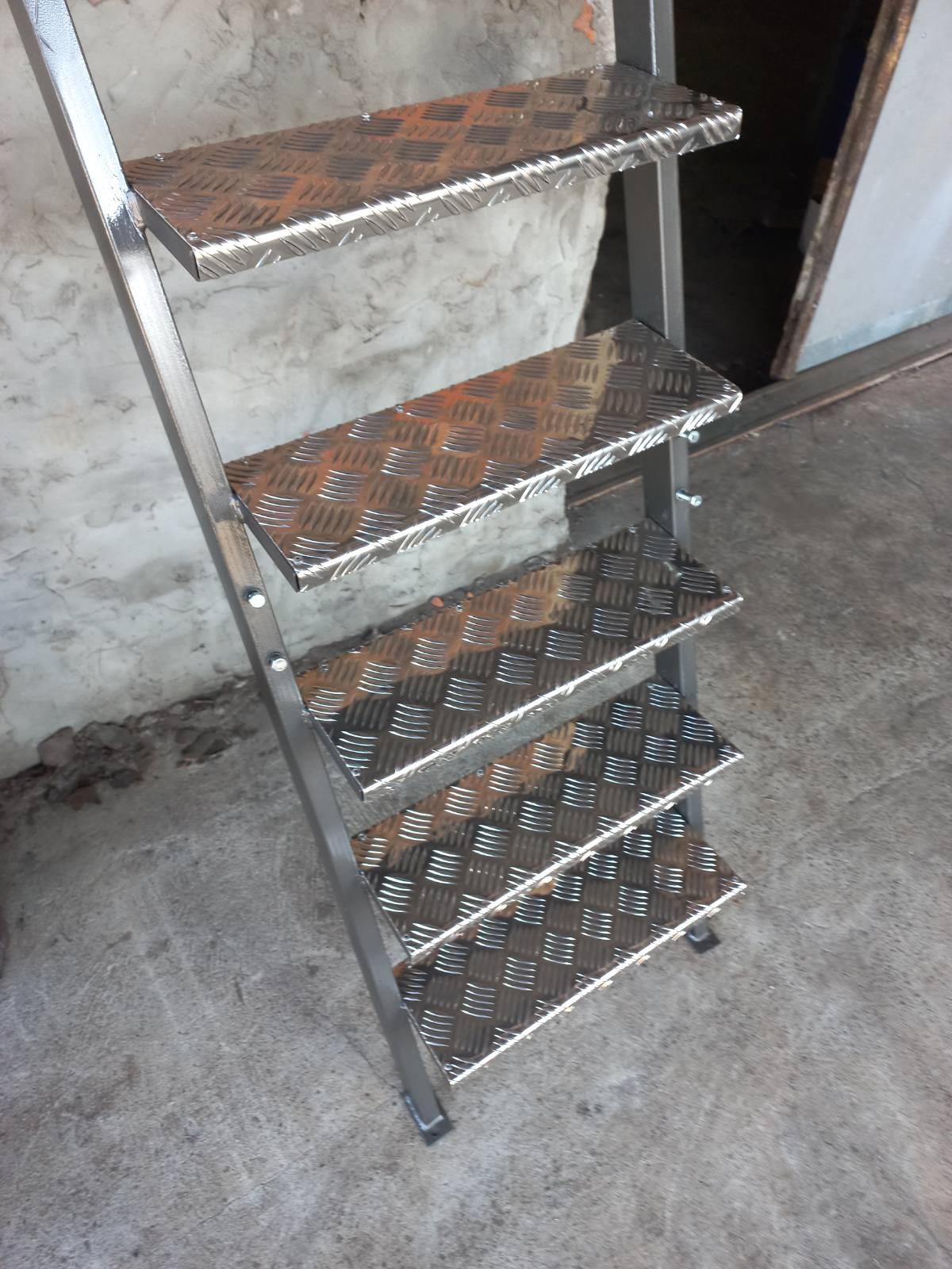 • Custom-sized steel ladder with aluminum tread steps Metal stairs wi...