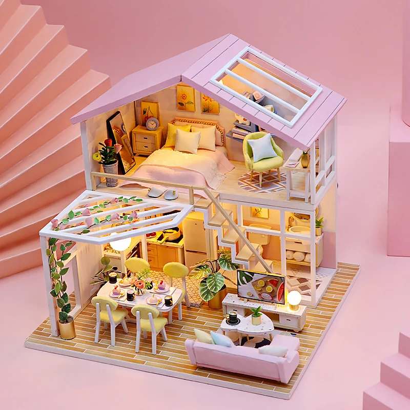 New Creative Wooden Diy Doll House Miniature Furniture Handmade Dol...