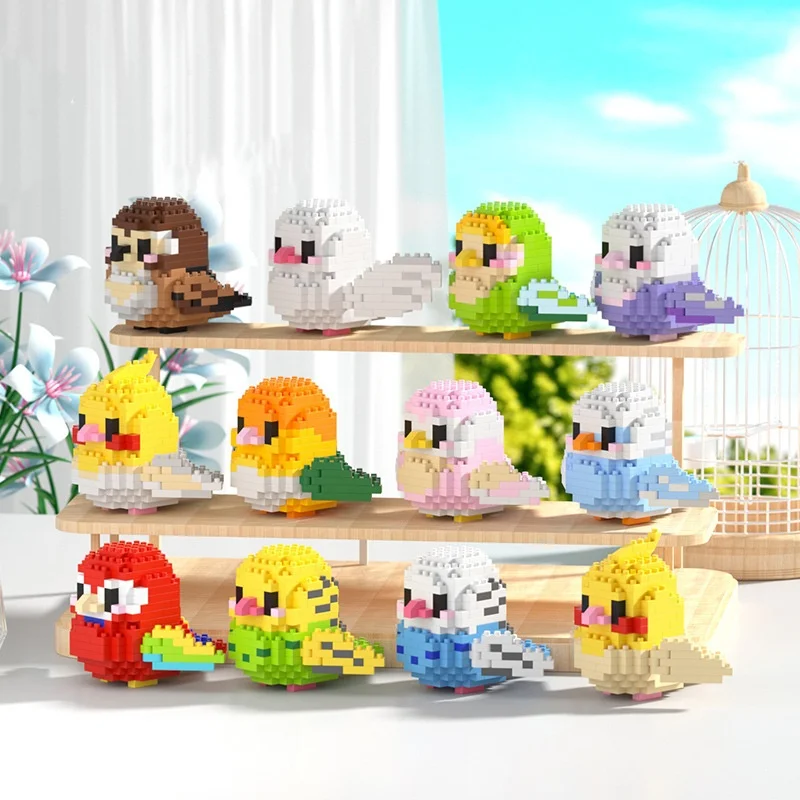 Moe Bird Series Building Blocks Model Cartoon Cute Parrots Sparrows...
