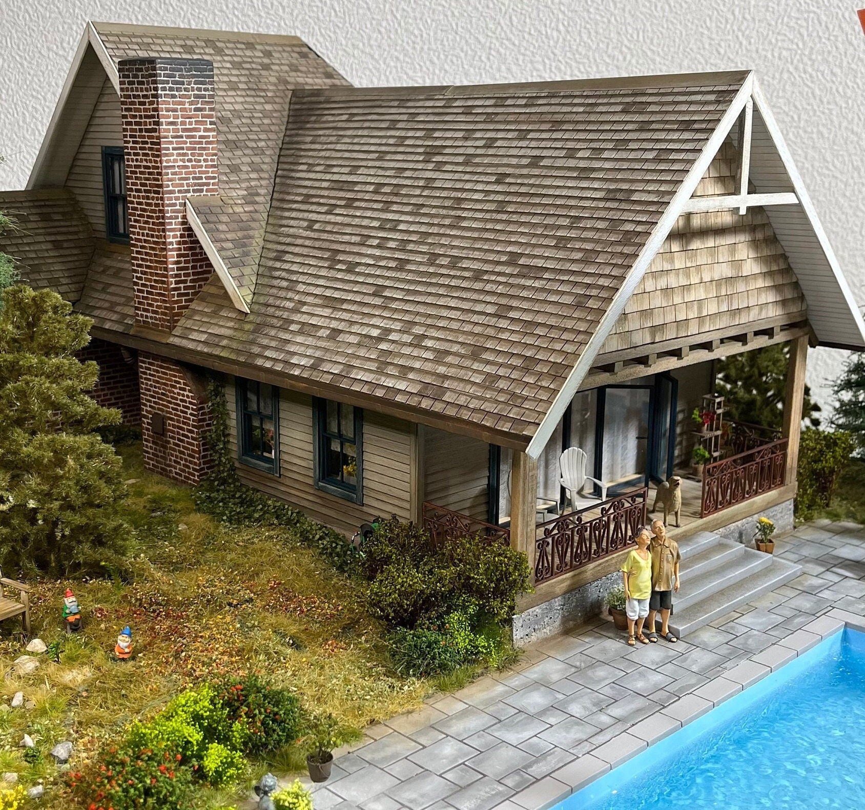 N-Scale Log Cabin Model, Detailed Interior Front Porch Benches - 1:...
