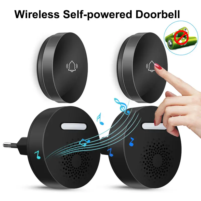 Wireless Doorbell No Battery Self Powered Button Welcome Ding Dong Receiver Smart Home Security Devi...