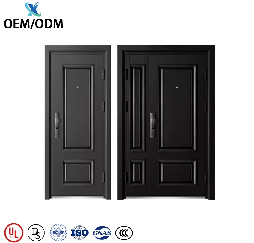 French-style Black Steel Security Door Smart Lock Integrated Door S...