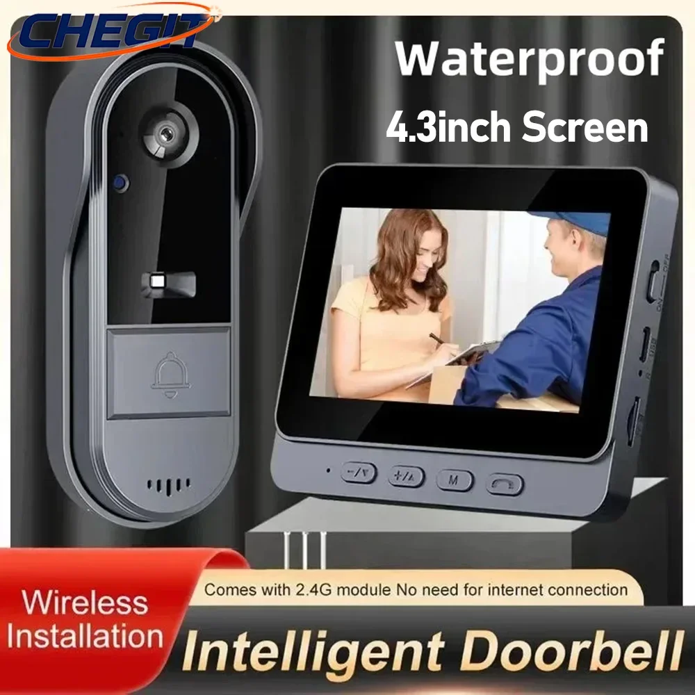 Waterproof Wireless Wifi Doorbell Camera 1080P Video Intercom Doorbell 4.3in IPS Screen Home Securit...