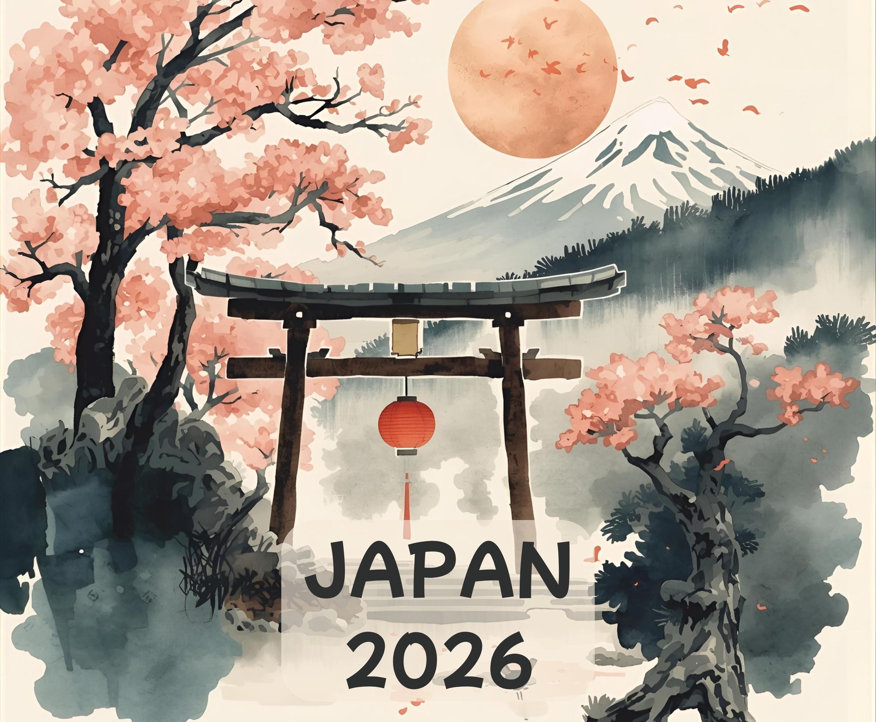 Japan Calendar 2026, Japan Calendar, Watercolor Calendar, Travel Ca...