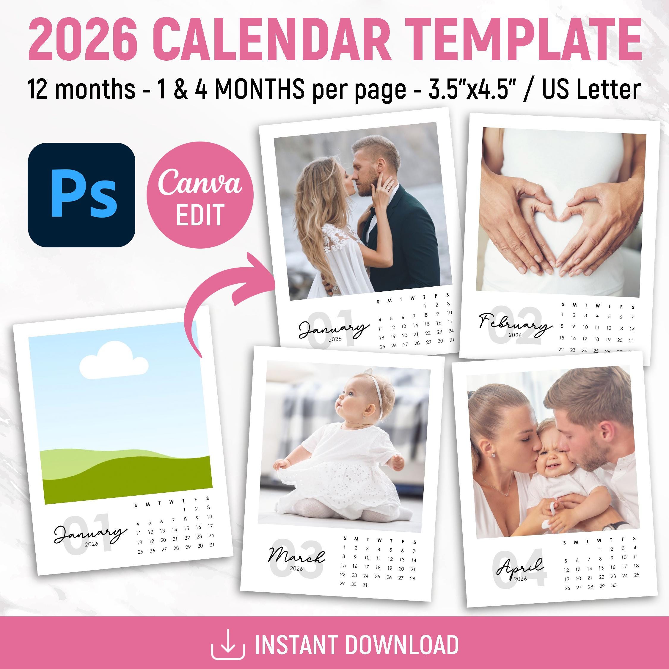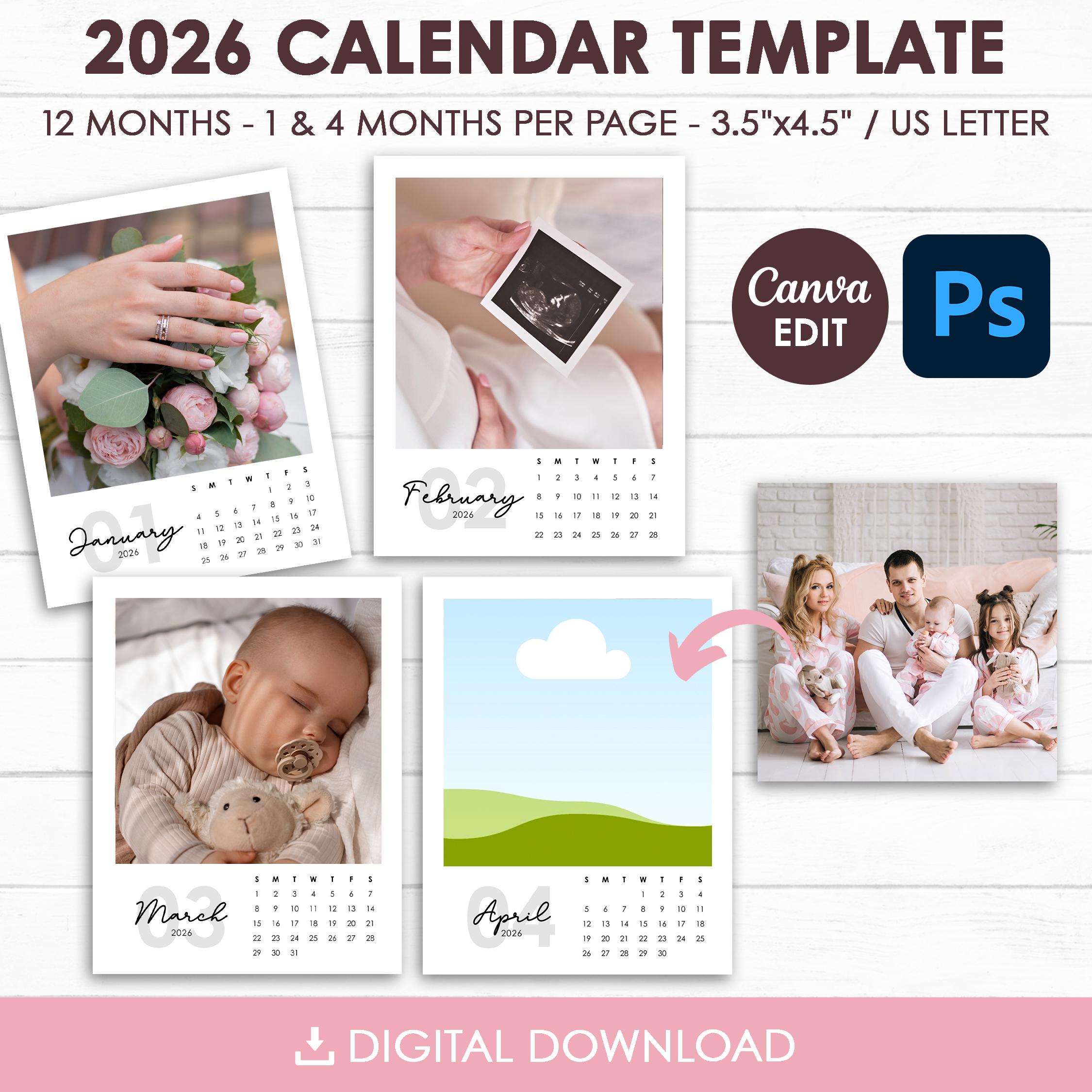 2026 Photo Calendar Template, Custom Photo Calendar, Magnetic Mini ...