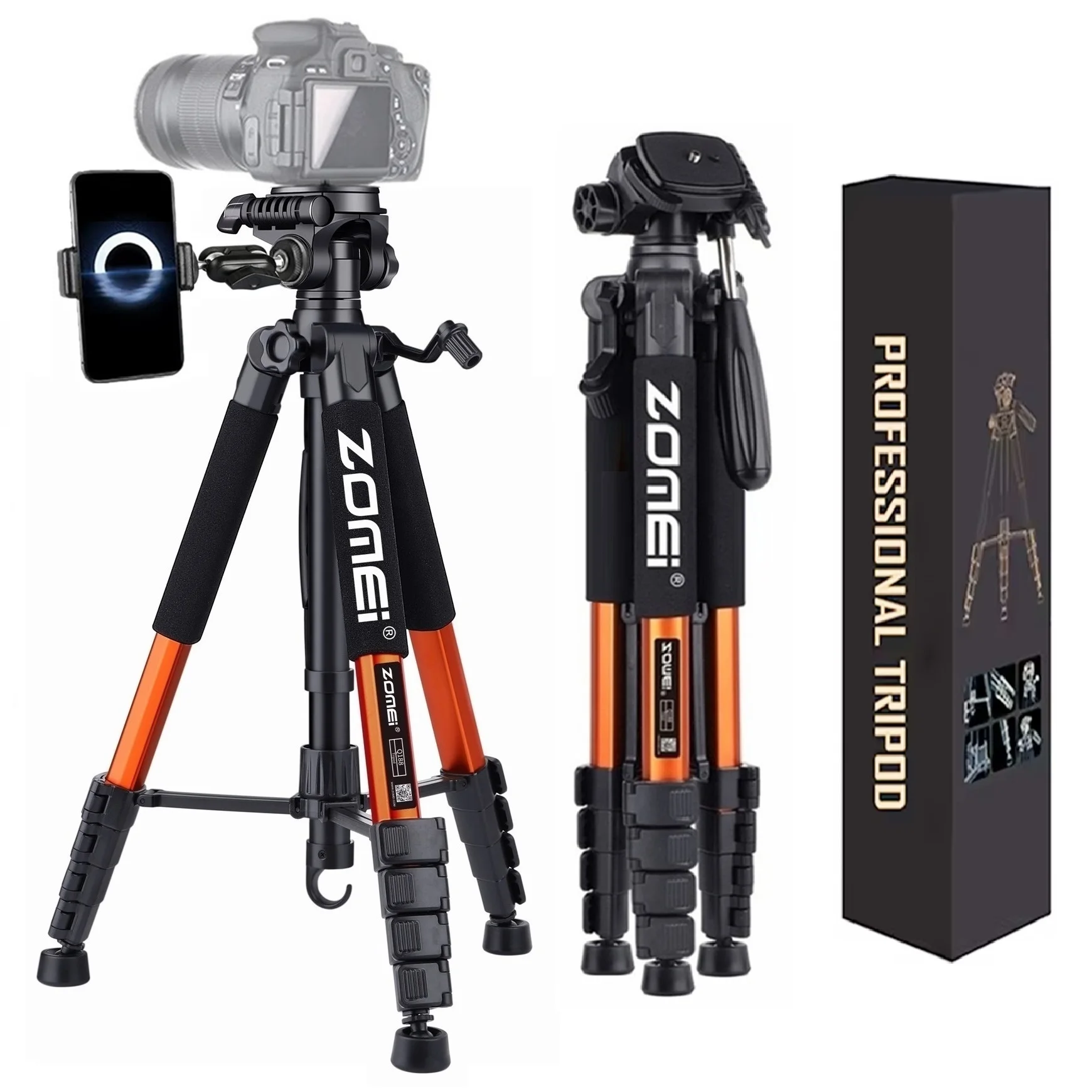 187cm/73.6in Tall Compact Aluminium Tripie Horizontal Shoot Digital...