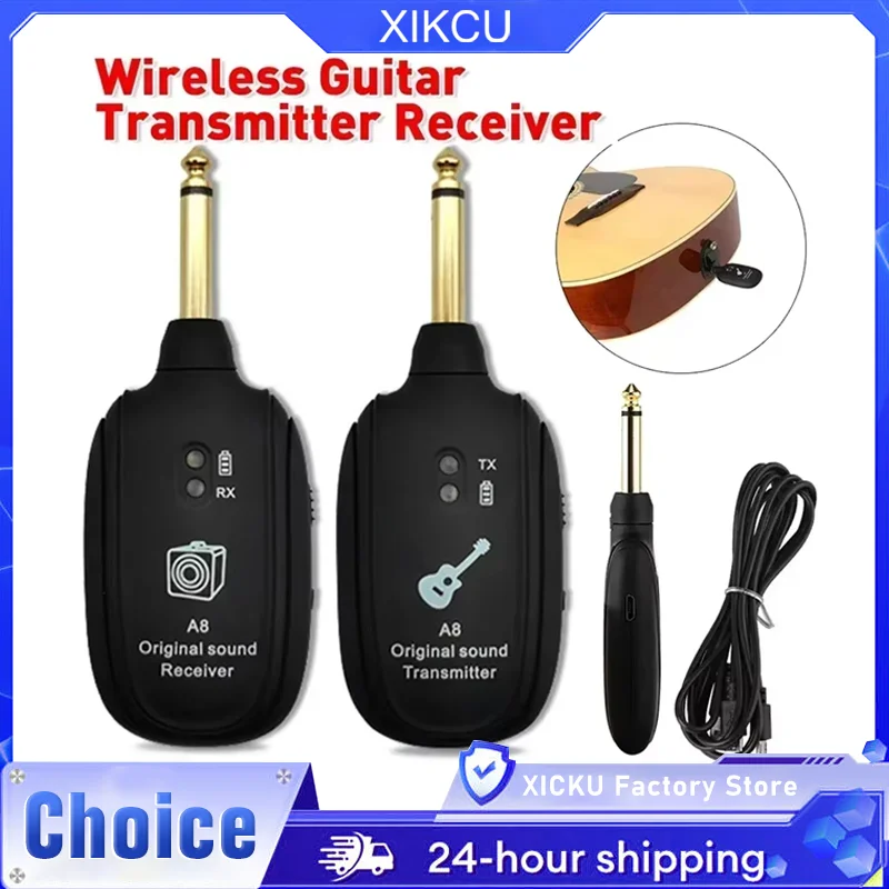 A8 Guitar Wireless System Transmitter Receiver Built-in Rechargeable Built- in Rechargeable Wireless...