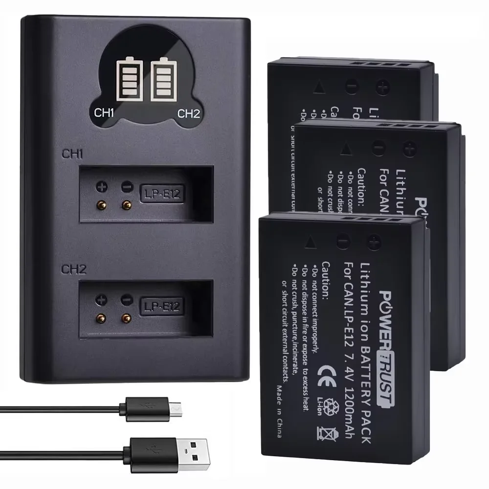 LP-E12 Battery/ USB Dual Charger for Canon EOS M 50,M50 Mark II,100D,EOS M, M2, M10, M100, PowerShot...