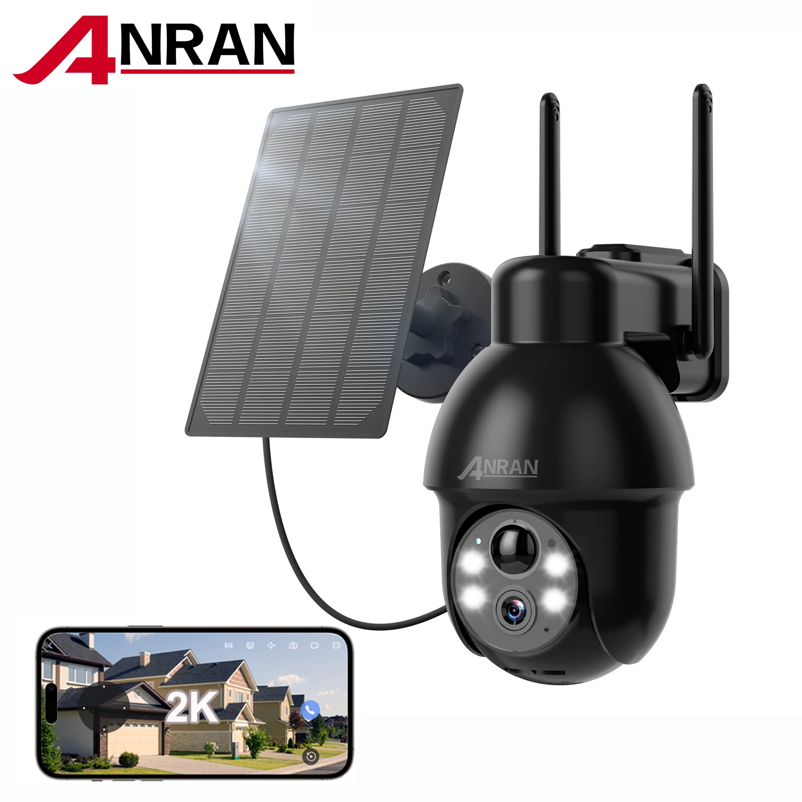 ANRAN 3MP Outdoor Surveillance Camera Alexa-Compatible 2.4G Wireless WiFi Solar Battery Camera Spotl...