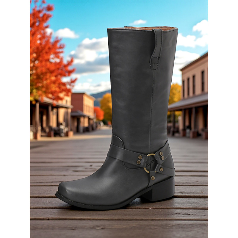 Women's Brown Western Harness Riding Boots - Faux Leather Square To...