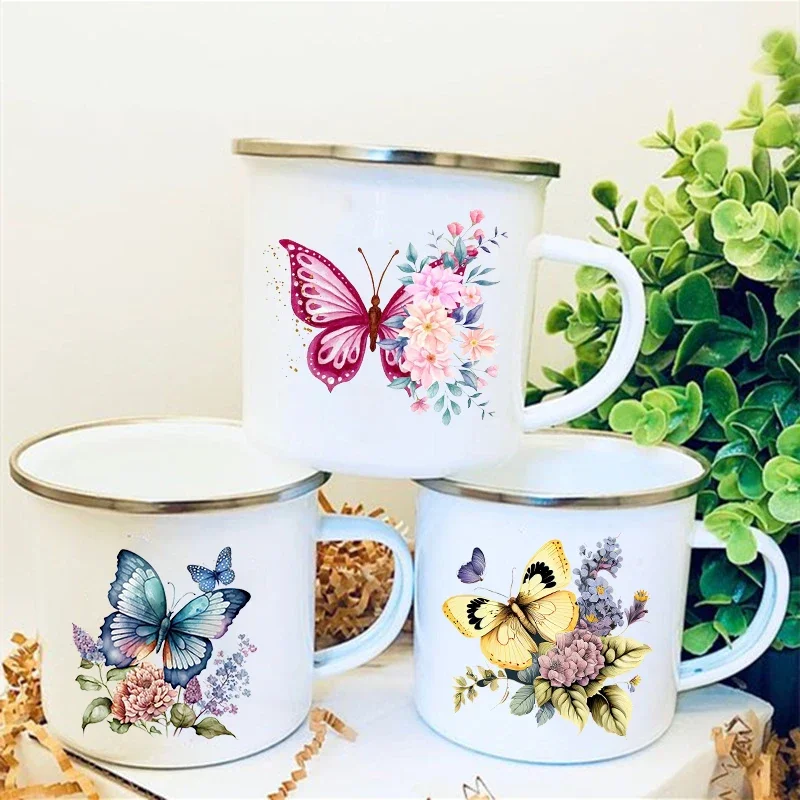 Butterfly Flower Print Mug Creative Coffee Cup Water Milk Cups Camping Mugs Handle Drinkware Campfir...