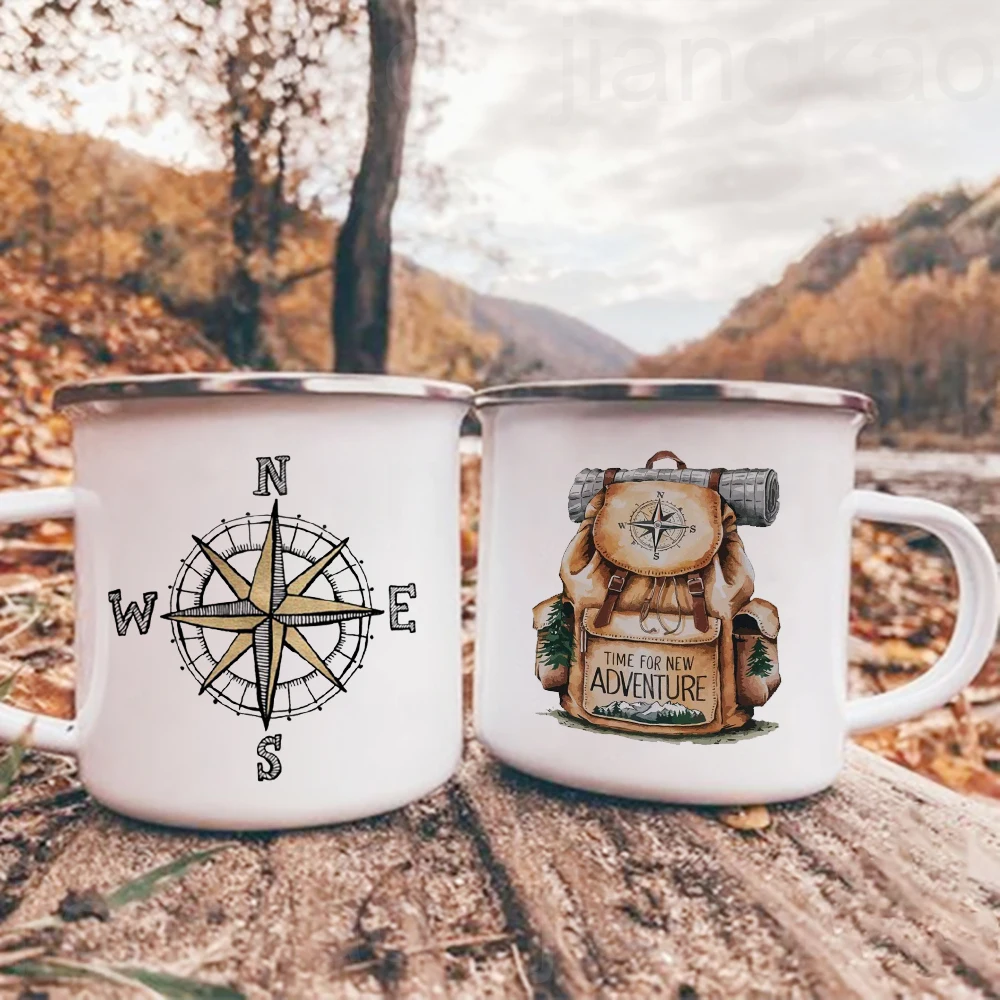 Time for New Adventure Printed Camper Mugs Camping Enamel Mug Campfire Party Beer Juice Cup Mountain...