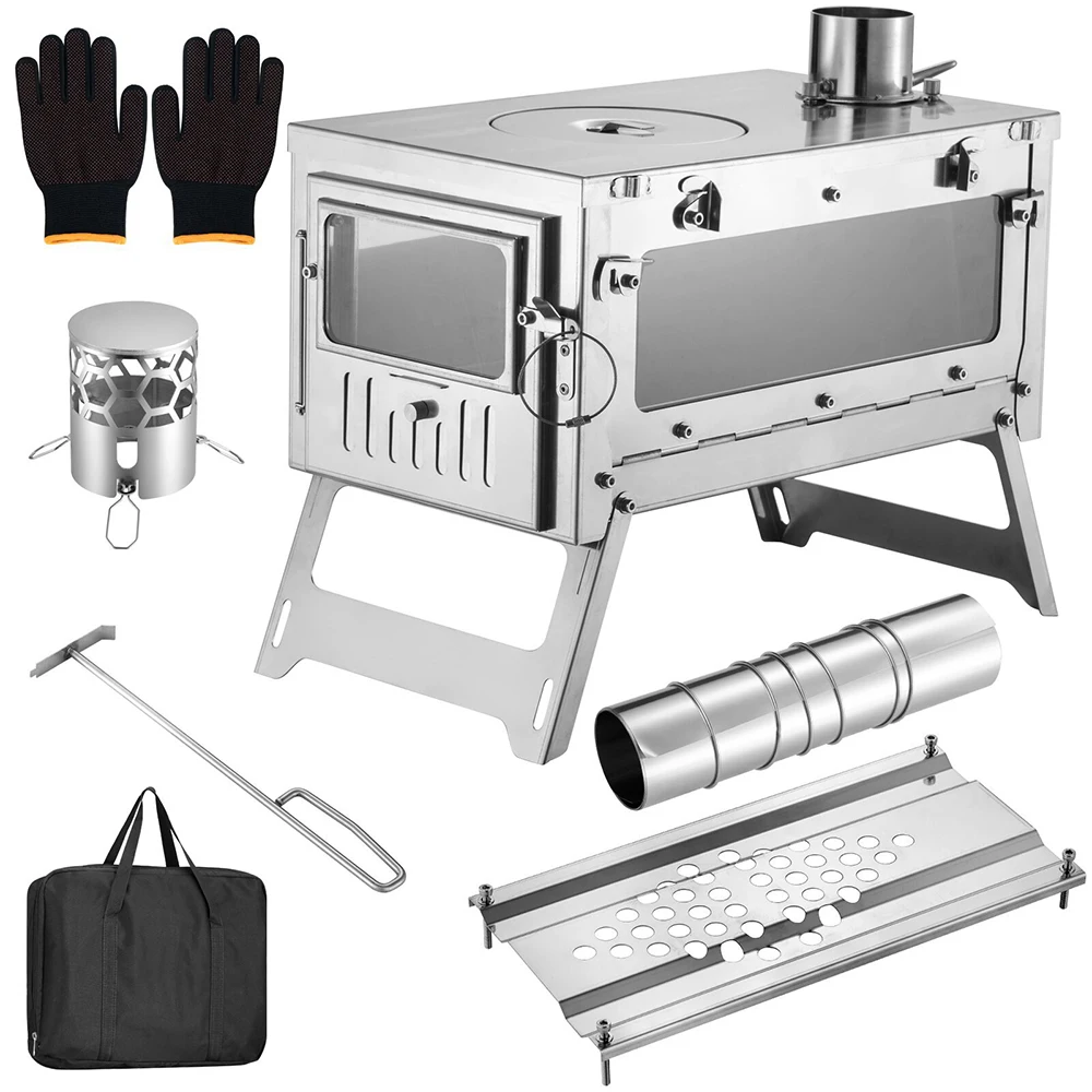Folding BBQ Stove Camping Foldable Wood Stove Stainless Steel Tent ...