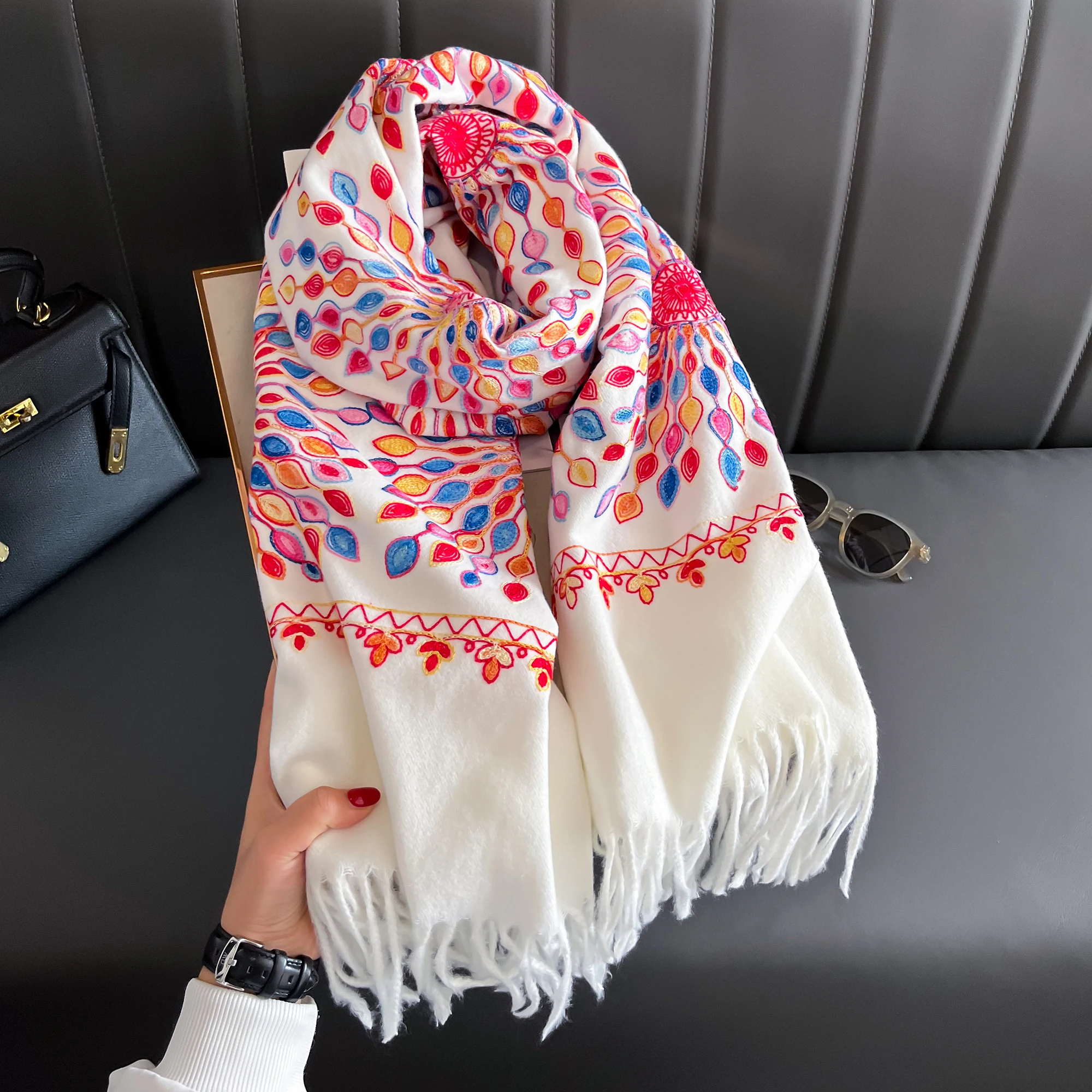 2024 Winter Cashmere Women Scarf Female Luxury Scarves Lady Tassel Women Embroidered Cashmere Shawl ...